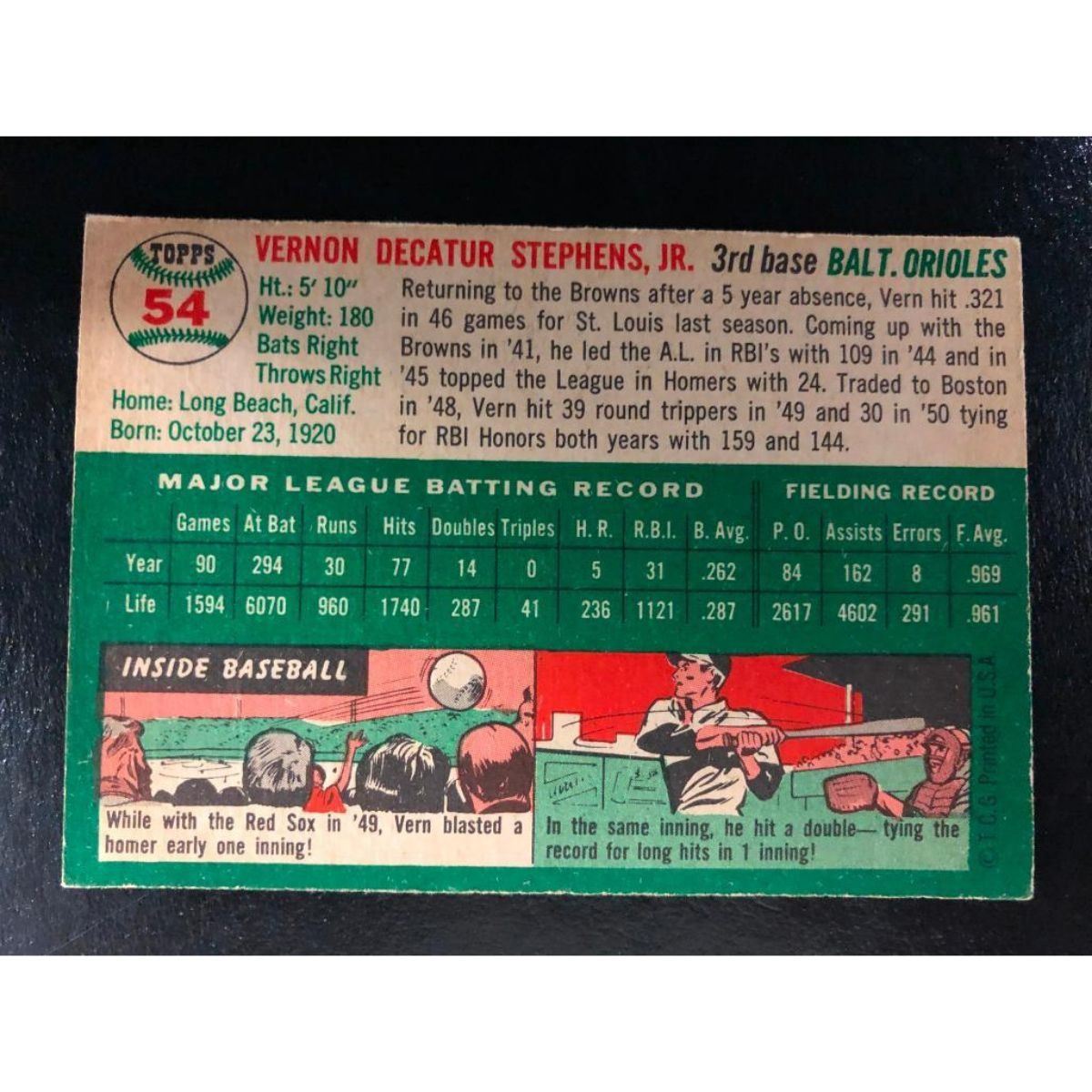 A 1954 Topps #54 Vern Stephens Baseball Card.Nice Card To Add To Any Early Baseball Collection. View Photos For Further Details.