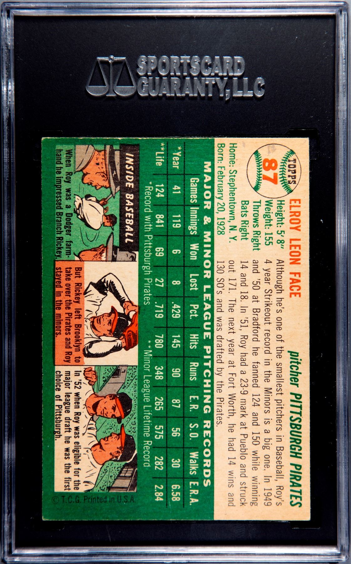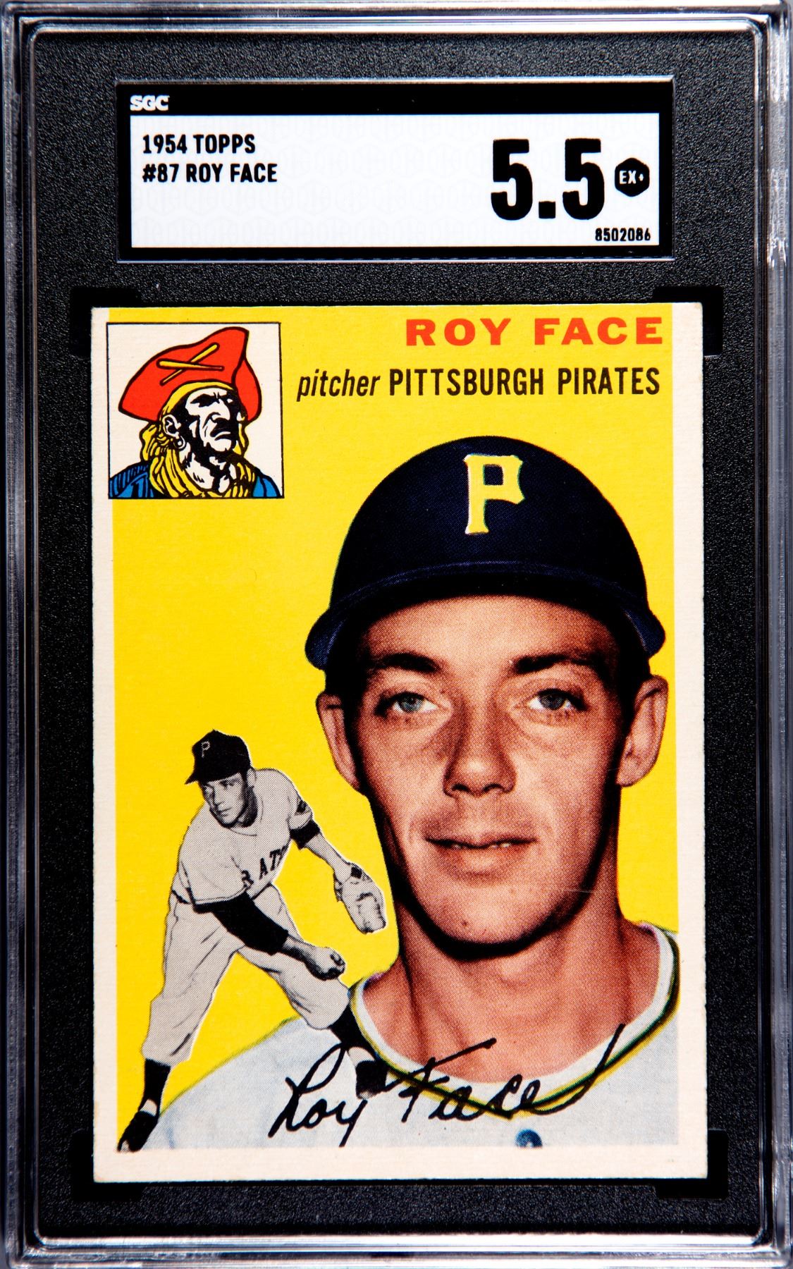 The original closer, Face was a premier bullpen pitcher for 17 seasons, setting marks that still stand today. This, his 2nd year card, grades a superior 5.5 EX+ by SGC.