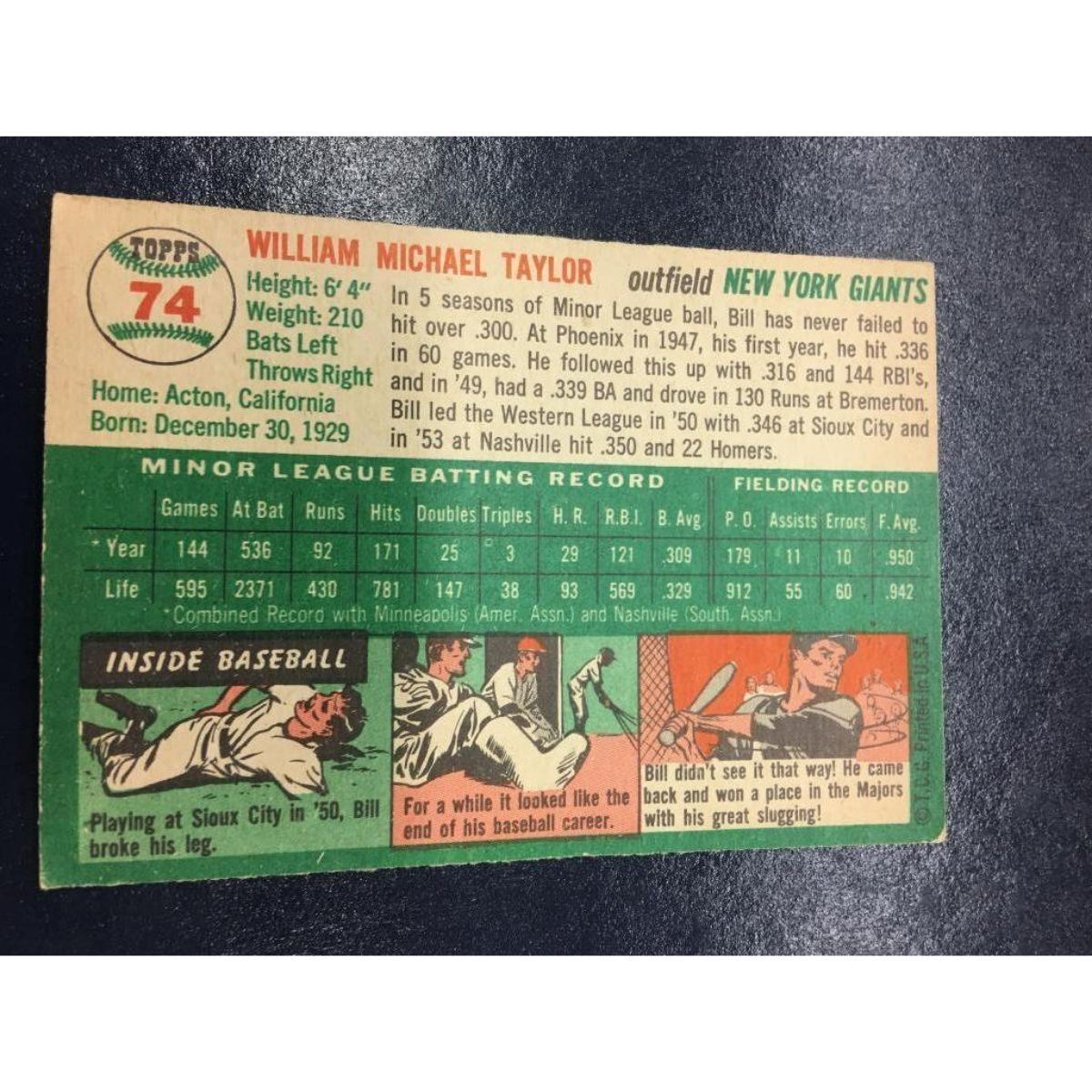 A 1954 Topps Baseball Card #74 Bill Taylor (Giants). Great Facsimile Autographed Card From The 1950's View Photos For Further Detail.