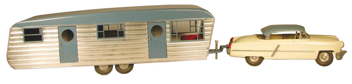 1954 Toy Mercury Convertible and Travel Trailer. A few scratches on the car otherwise very good condition. The Trailer is in excellent condition. 40 inches long.