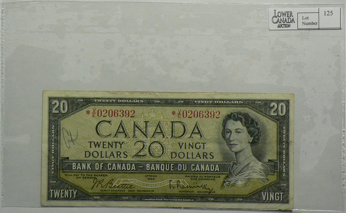 1954 Twenty Dollars Replacement Modified, BC-41bA, VF, Beattie Rasminsky, serial *V/E0206392.