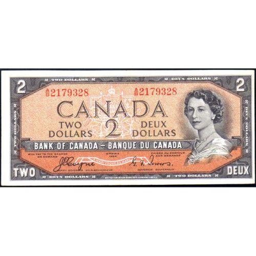 1954 Two Dollars Devil’s Face Coyne-Towers, BC-30a Serial Number A/B2179328, Uncirculated. Off centre toward the right