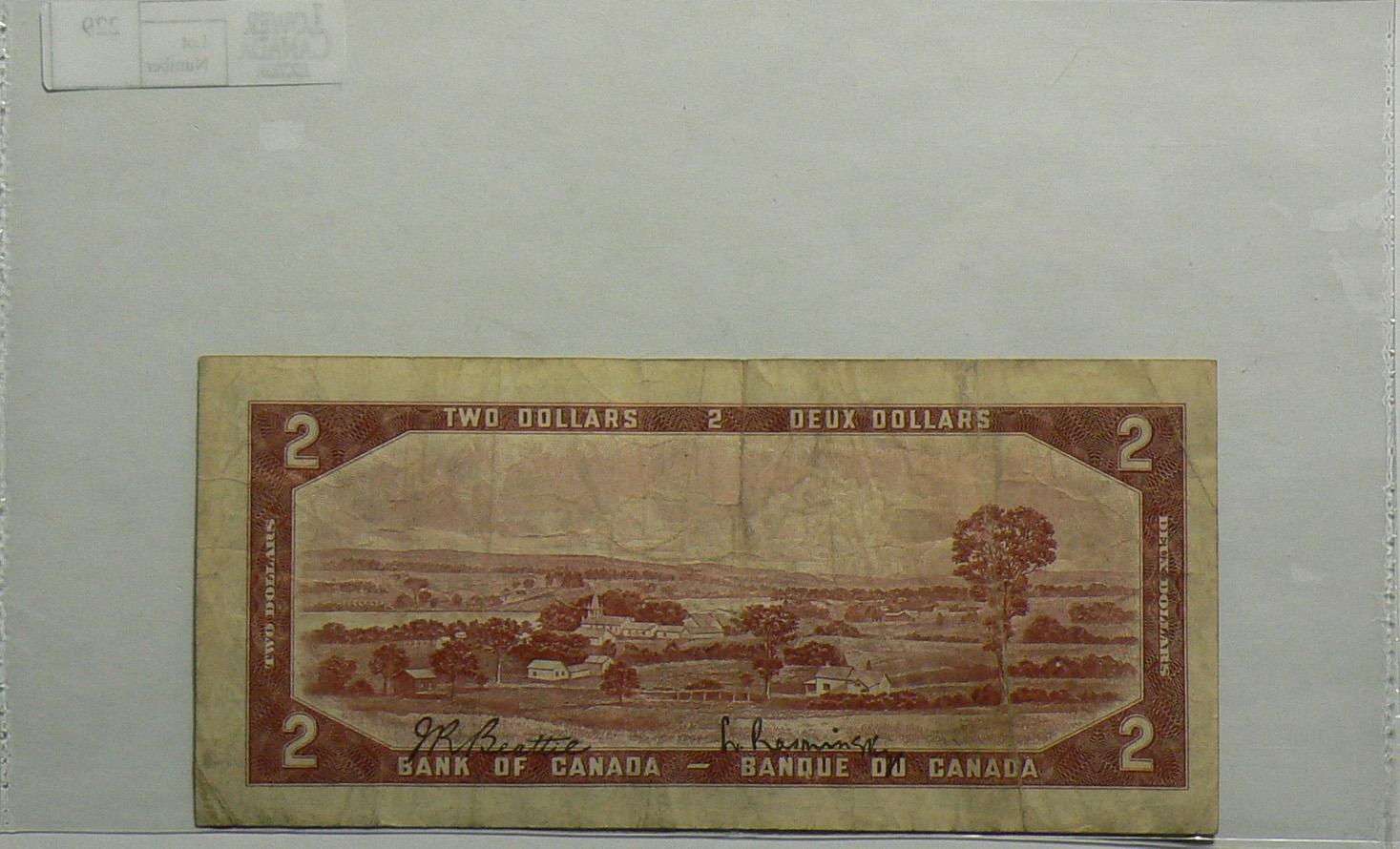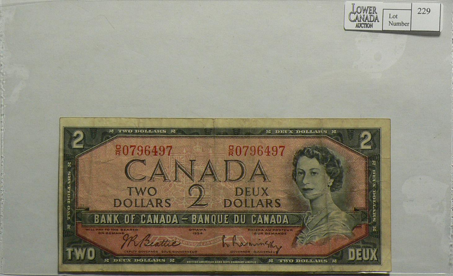 1954, Two Dollars Modified, BC-37b, Fine, Beattie Rasminsky, Serial O/R0796497. Normal signature on Obverse AND additional set of signature on Reverse.