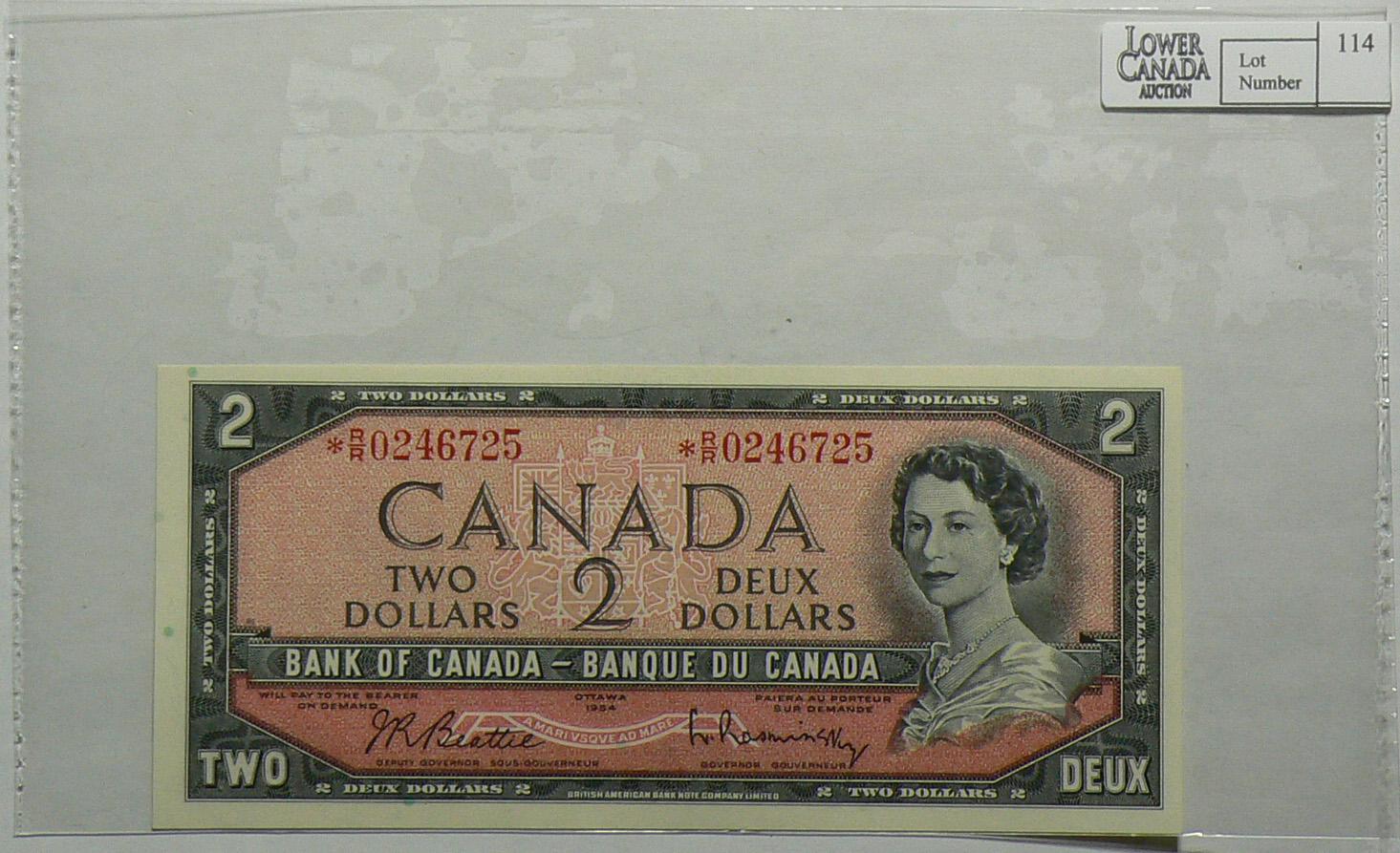 1954 Two Dollars Replacement Modified, BC-38bA, Choice UNC with light paper clip mark, Beattie Rasminsky, serial *R/R0246725.