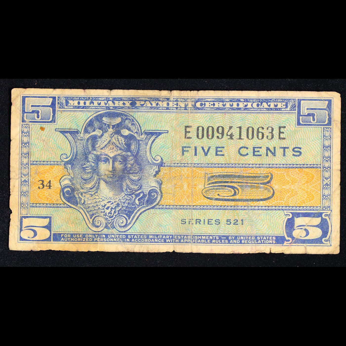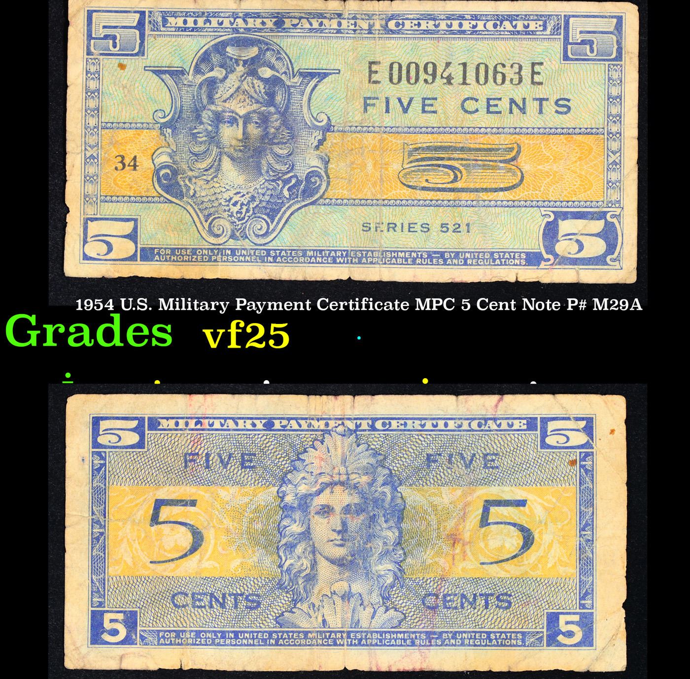 1954 U.S. Military Payment Certificate MPC 5 Cent Note P# M29A Grades vf+. Allied Military Currency ("AMC") was a form of currency issued by the Allied powers during World War II, to be issued to troops entering liberated or newly occupied countries. Historically, soldiers serving overseas had been paid in local currency rather than in their "home" currency. Most cash drawn by soldiers would go directly into the local economy, and in a damaged economy the effects of a hard currency such as the dollar circulating freely alongside weaker local currencies could be severely problematic, risking severe inflation.