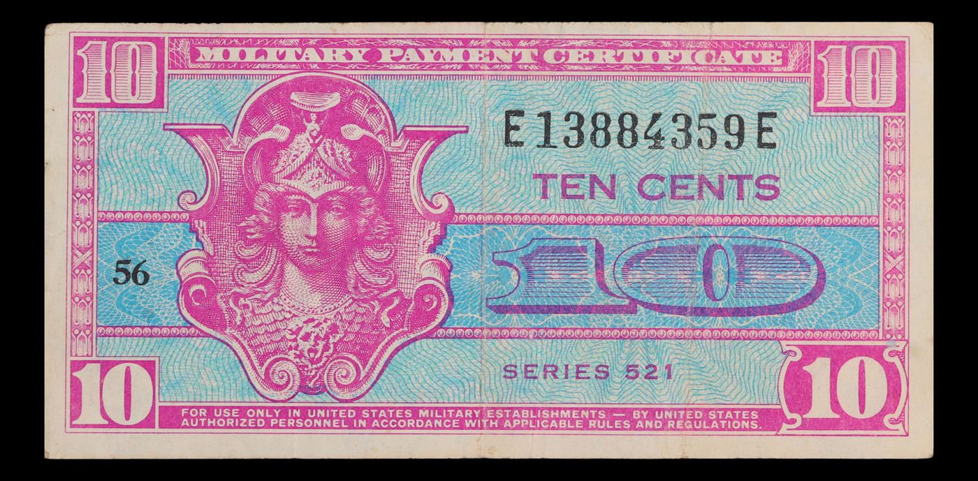 1954 U.S. Military Payment Note 10 Cents P: M30A Grades vf++.
