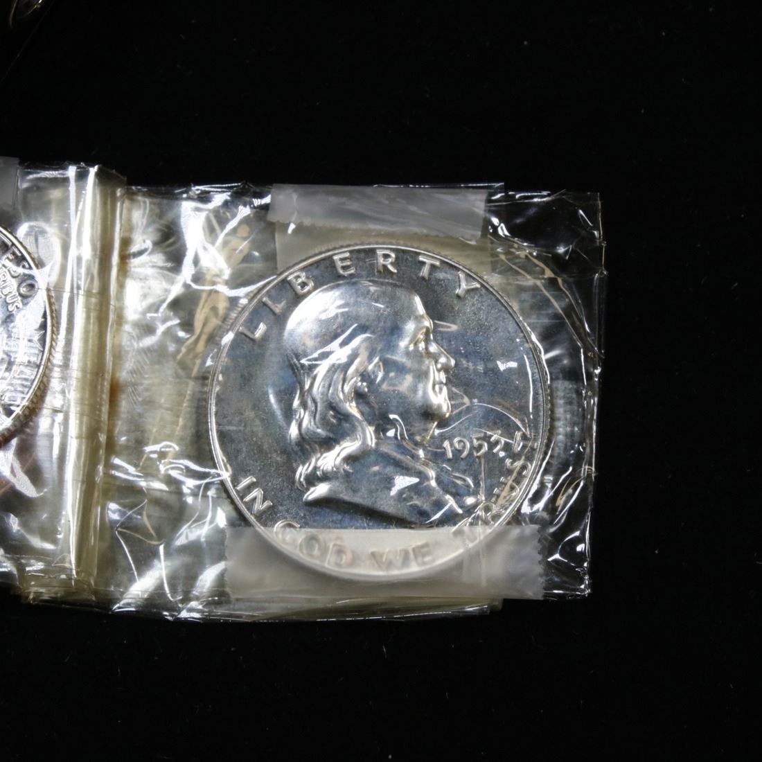 1954 United States Original Mint Proof Set. The 1954 mint set is a double mint set which includes 30 coins. This is 1/6 of a set and includes just the Philadelphia issues. It includes 1 of each coin issued in 1954 from the Philly mint. A 1954-p Franklin Half, 1954-p silver Washington Quarter, 1954-p silver Roosevelt dime, 1954-p Jefferson nickel and 1954-p lincoln cent. These are beautiful above average PQ mint set coins. The coins all appear to be Select/Choice Unc.