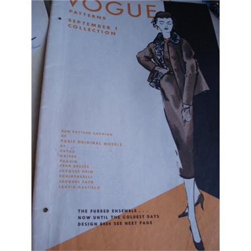 What a find is this 1954 catalog of Vogue designer and coutour patterns. This fabulous Vogue pattern catalog features full color pictures of their best patterns for women. These were specialty pattern catalogs and were for the upper echelon of the time. Features designs by Jacques Heim, Paquin, Schiaparelli, Griffe, Jacques Fath, Desses, Special Designs and Couturier Designs. There are 36 pages and the catalog measures 15" tall by 9 1/2" across. If you have the heart you could take it apart and frame the pages, they are highly decorative and colorful, and of course such fashions! A great addition to your collection of vintage sewing patterns and vintage clothing! Do view the other Vogue Patterns catalog we have listed
