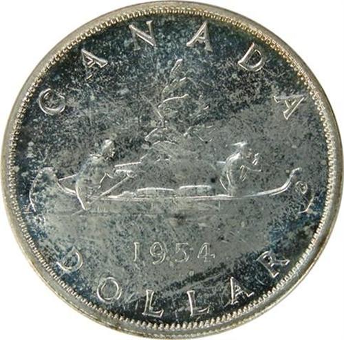 Canada Silver Dollar 1954 Very Choice Cameo Proof-Like. A pale golden toned piece