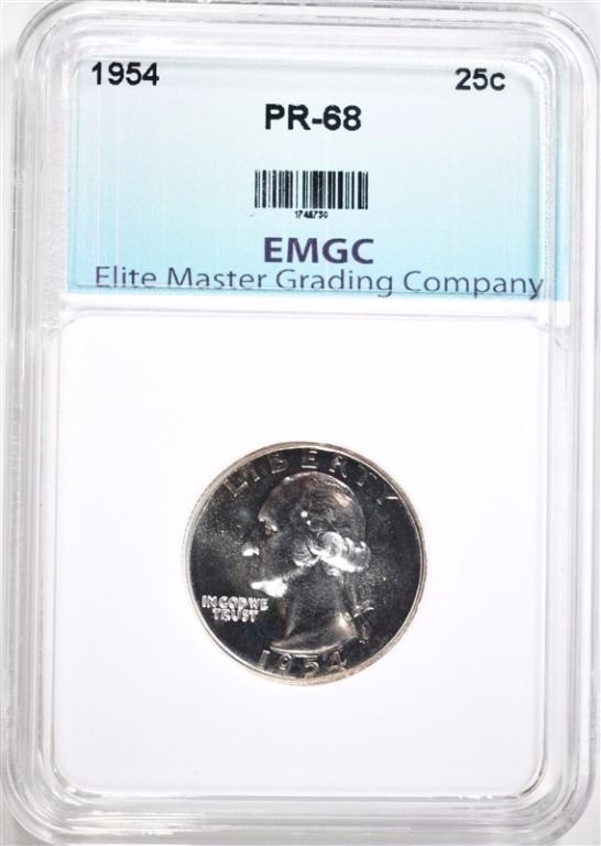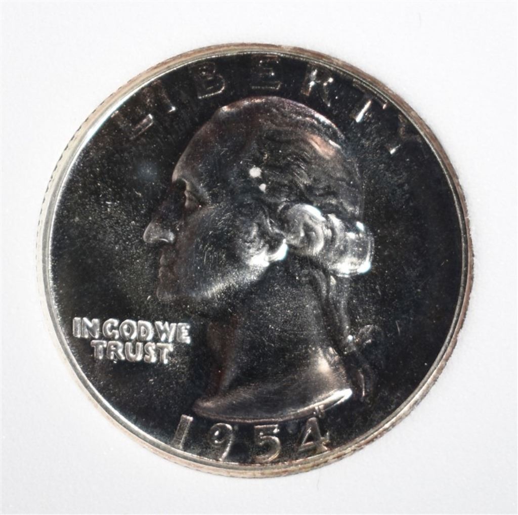 1954 WASHINGTON QUARTER, EMGC SUPERB GEM PROOF ESTIMATE $150 - $175.