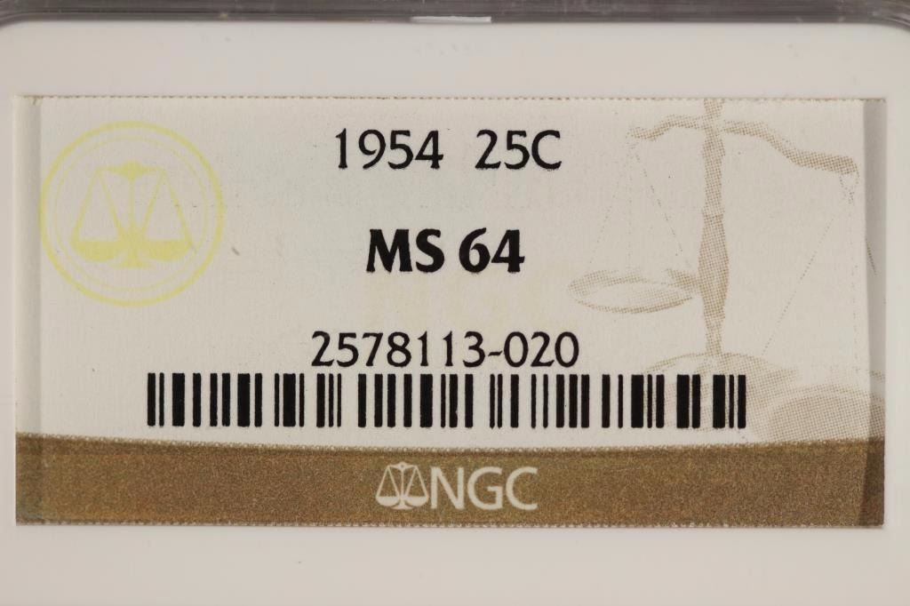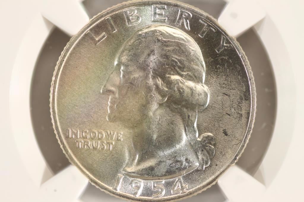 1954 WASHINGTON SILVER QUARTER NGC MS64