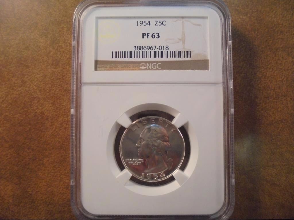 1954 WASHINGTON SILVER QUARTER NGC PF63