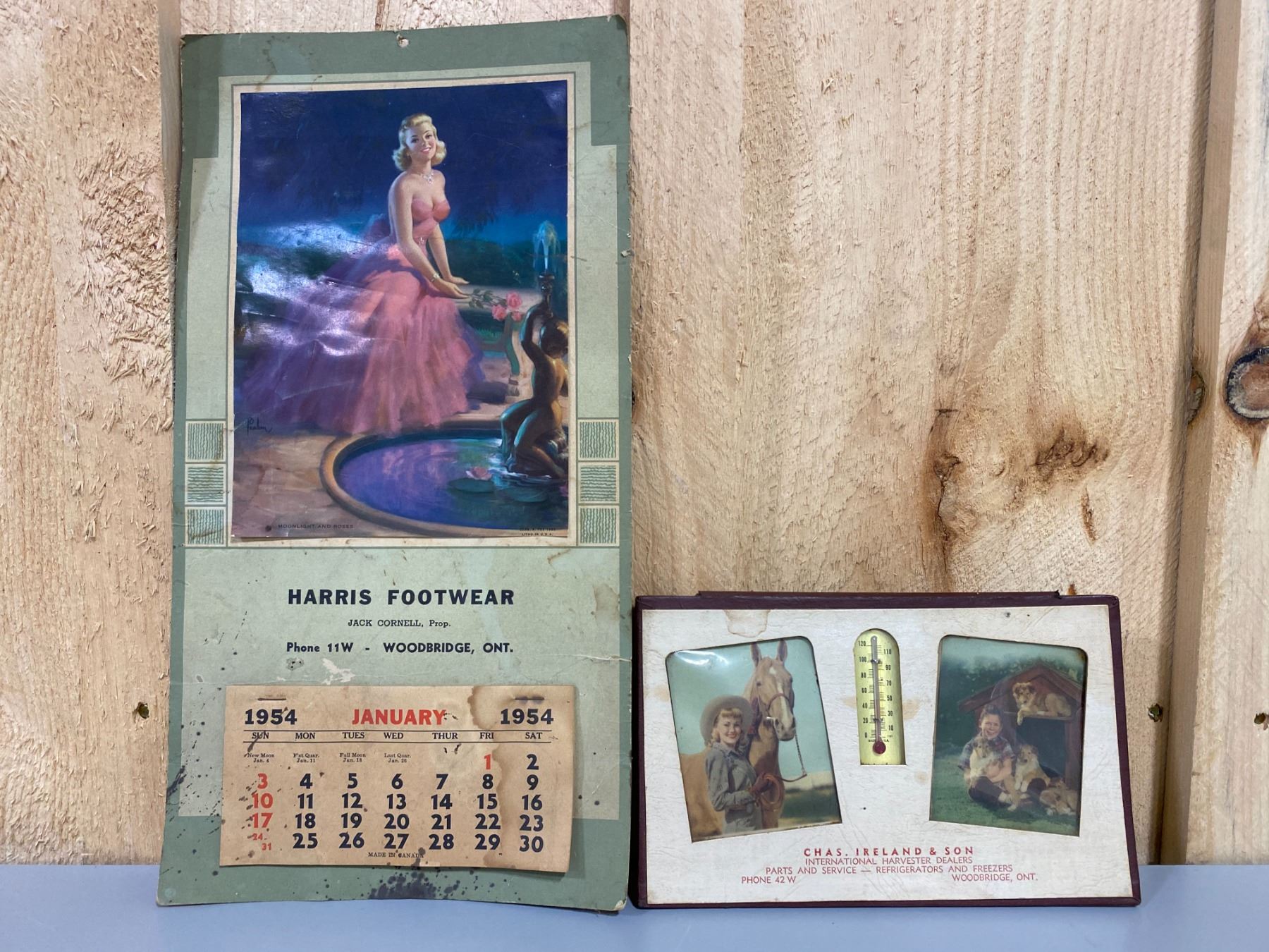 1954 WOODBRIDGE THERMOMETER & CALENDAR