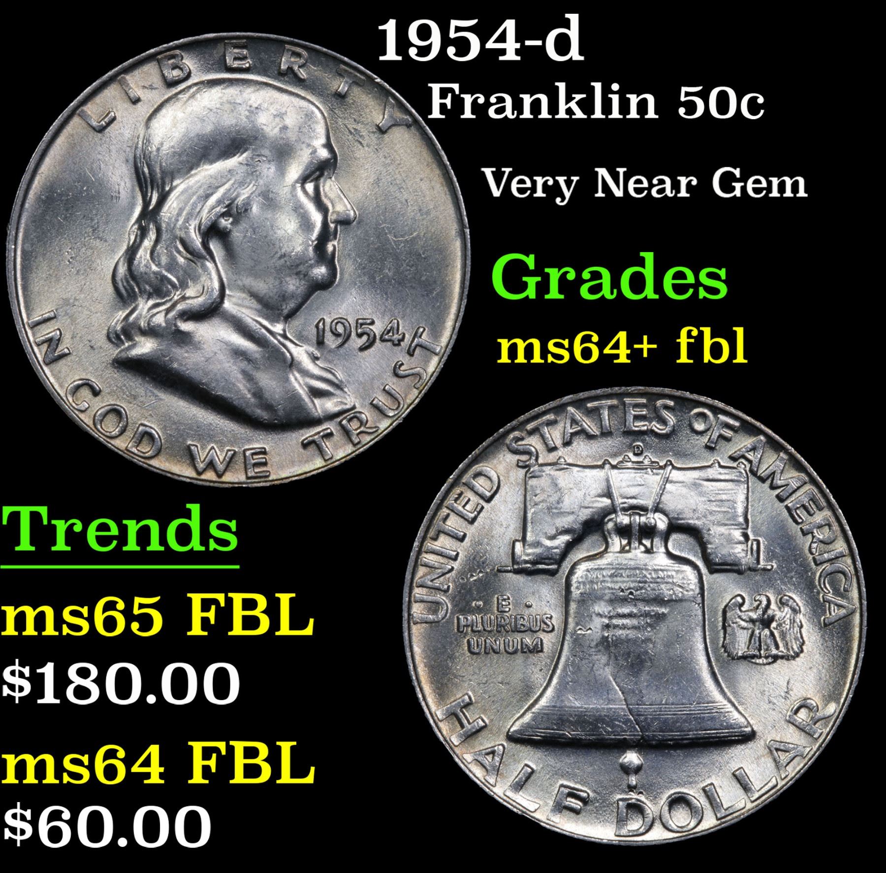 1954-d . Very Near Gem Franklin Half Dollar 50c Grades Choice Unc+ FBL.