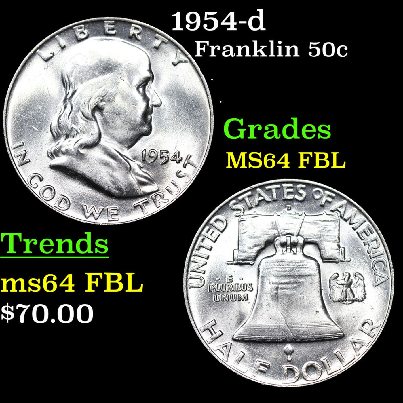 1954-d Franklin Half Dollar 50c Grades Choice Unc FBL.