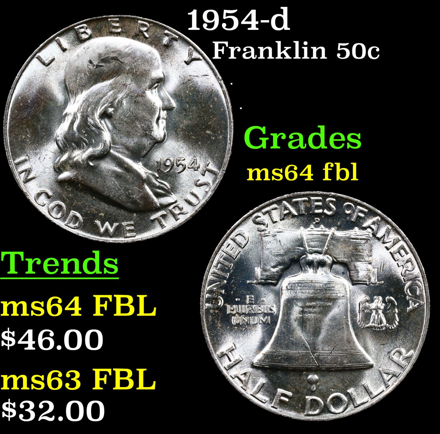 1954-d Franklin Half Dollar 50c Grades Choice Unc FBL.