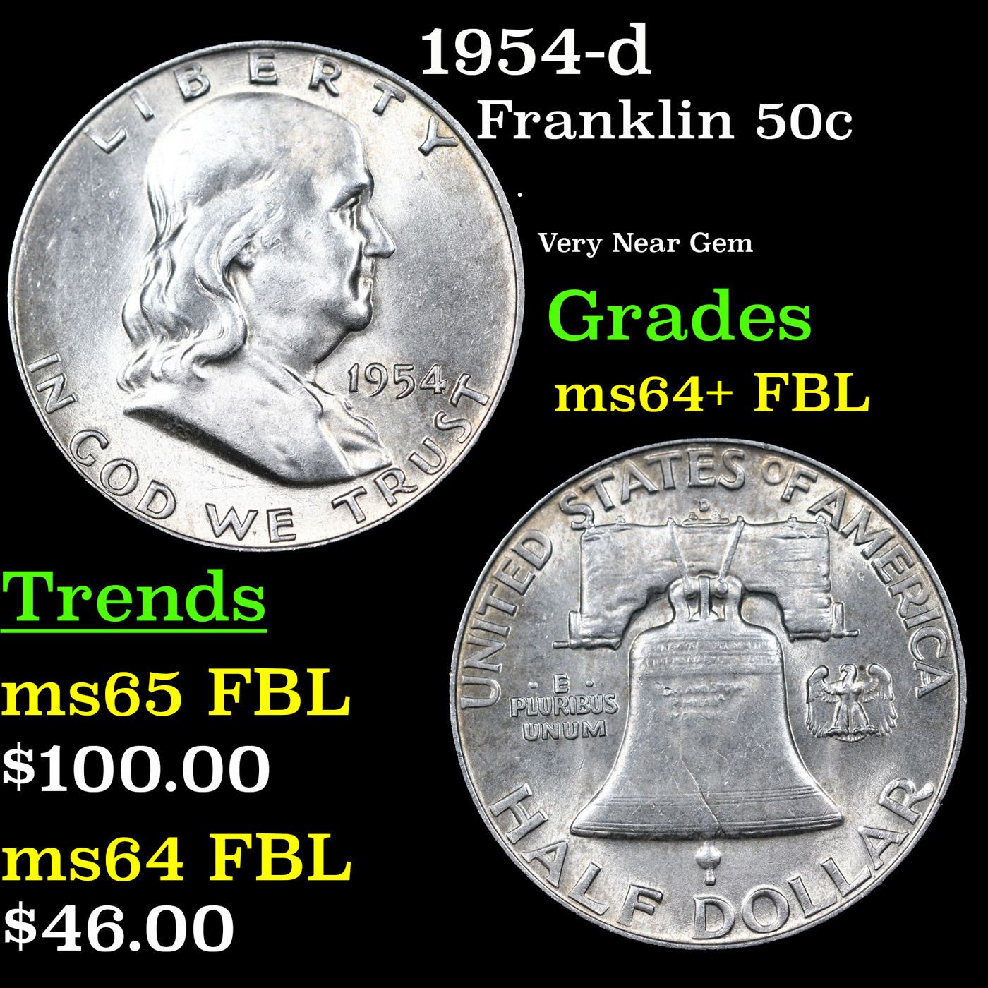 1954-d Franklin Half Dollar 50c Grades Choice Unc+ FBL.