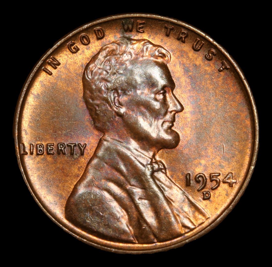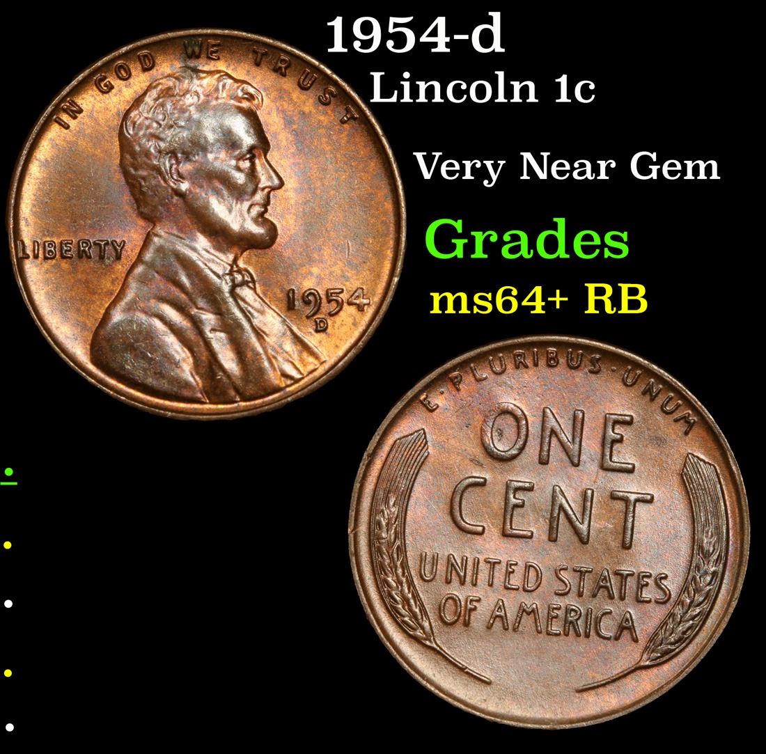 1954-d . Very Near Gem Lincoln Cent 1c Grades Choice+ Unc RB.