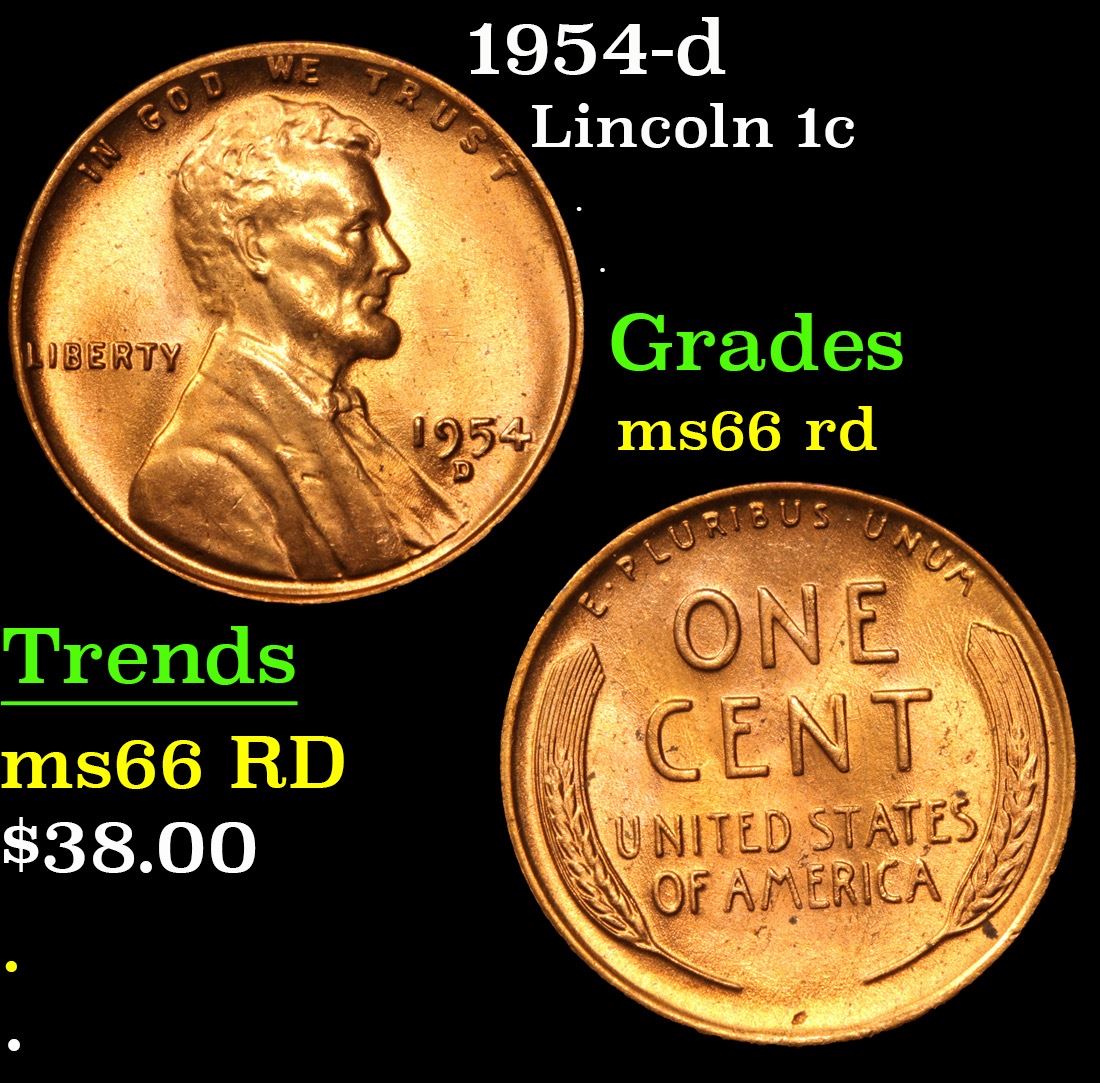 1954-d Lincoln Cent 1c Grades GEM+ Unc RD.