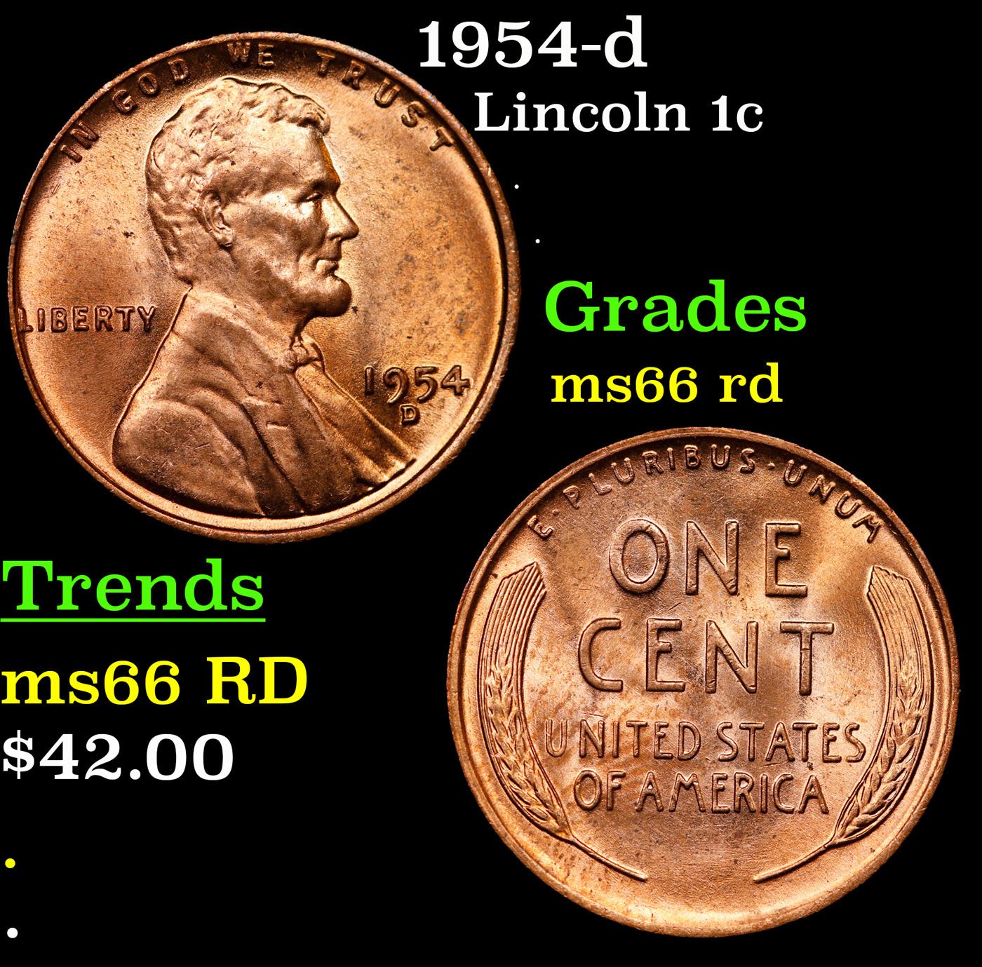 1954-d Lincoln Cent 1c Grades GEM+ Unc RD.