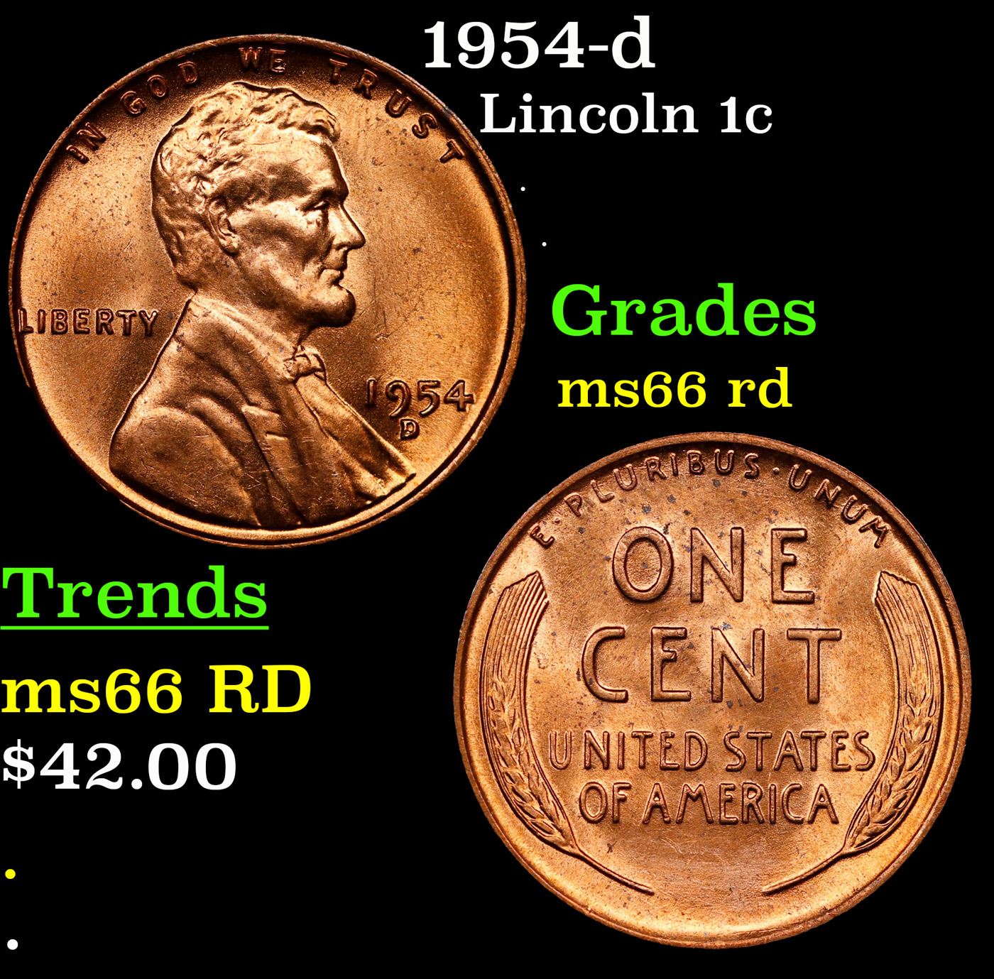 1954-d Lincoln Cent 1c Grades GEM+ Unc RD.