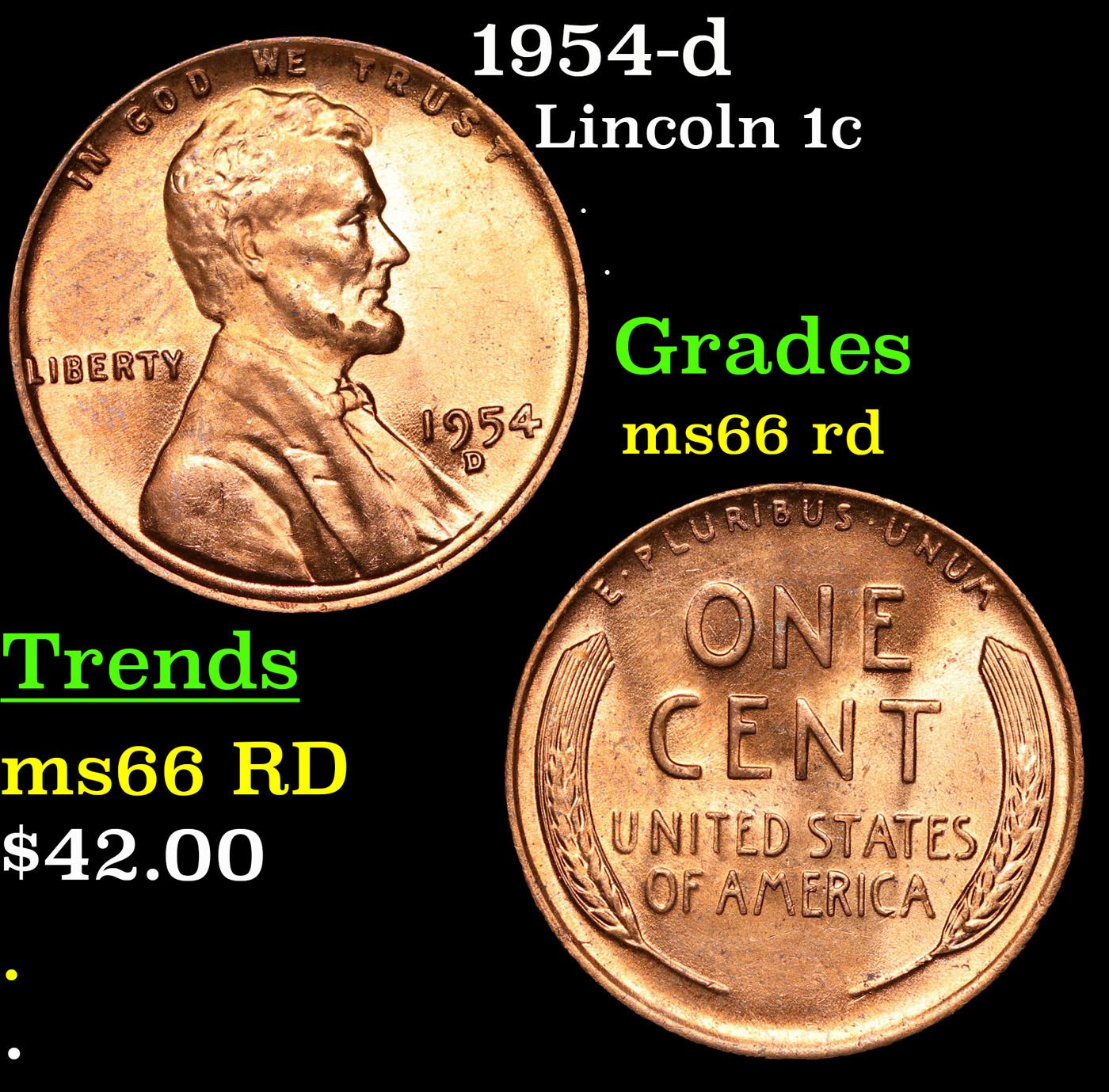 1954-d Lincoln Cent 1c Grades GEM+ Unc RD.