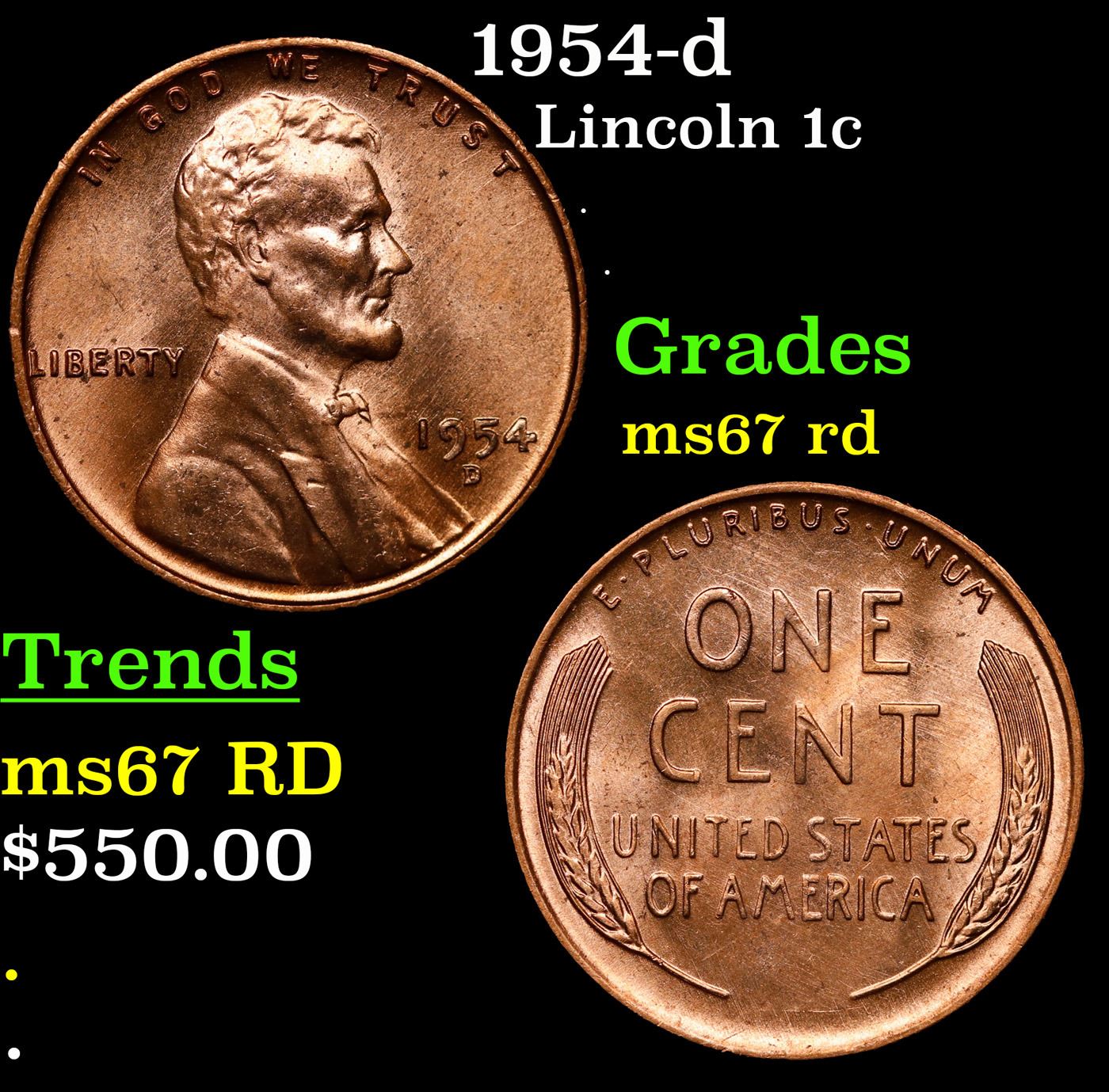 1954-d Lincoln Cent 1c Grades GEM++ Unc RD.