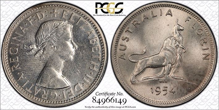 1954(m) Australian Royal Visit Florin - PCGS MS 63