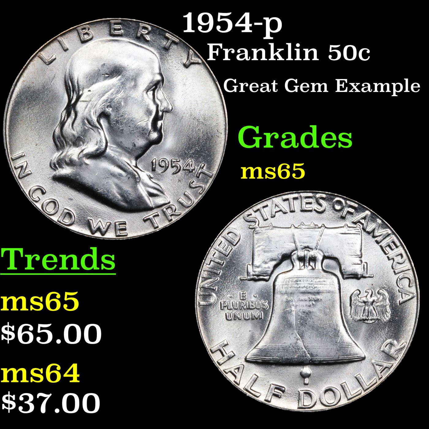 1954-p Franklin Half Dollar 50c Grades GEM Unc.