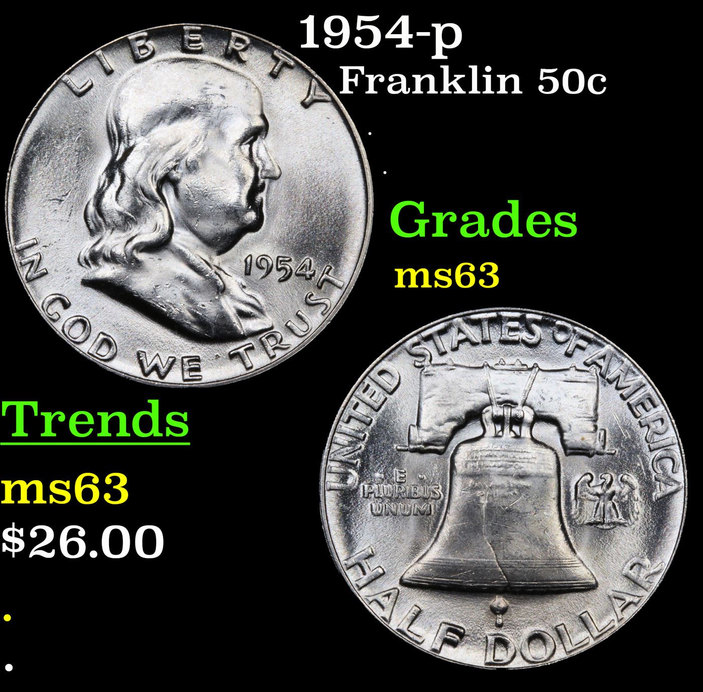 1954-p Franklin Half Dollar 50c Grades Select Unc.