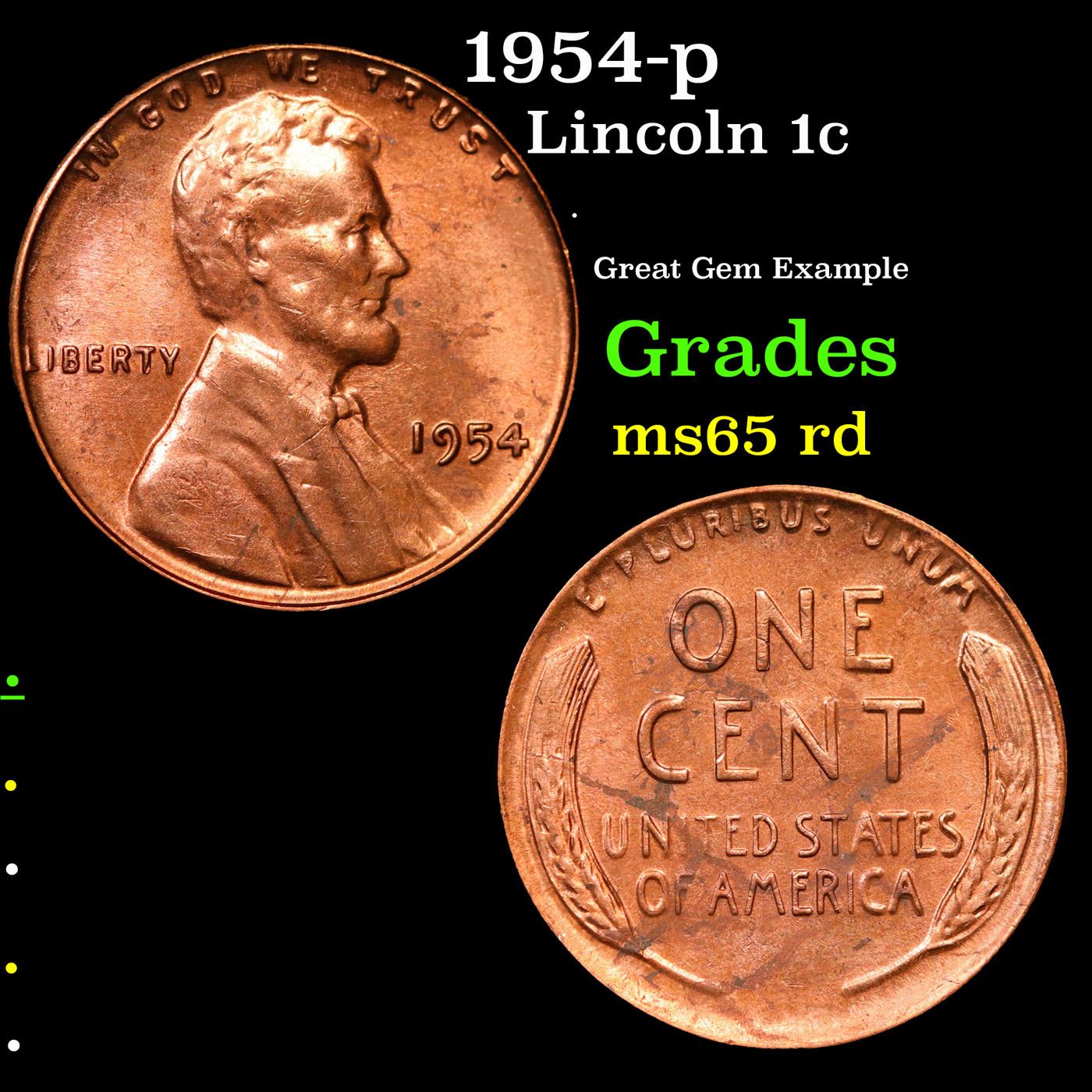 1954-p Lincoln Cent 1c Grades GEM Unc RD.