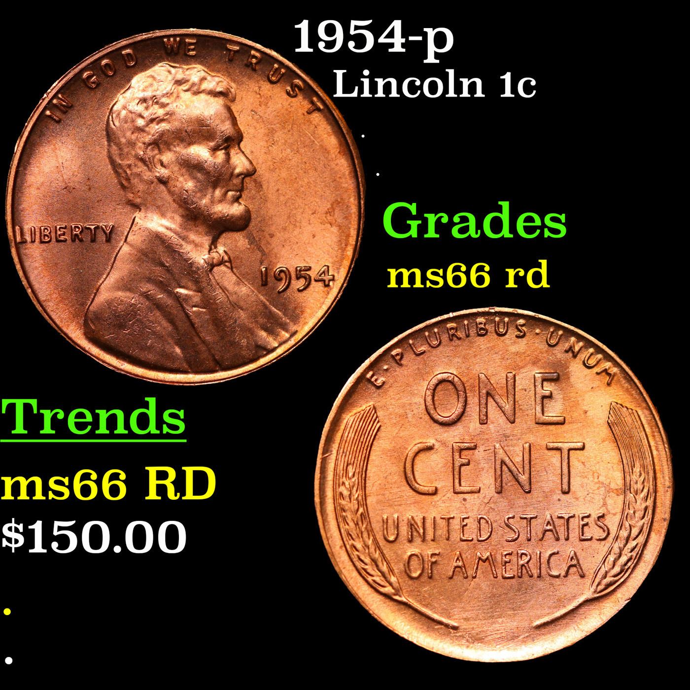 1954-p Lincoln Cent 1c Grades GEM+ Unc RD.