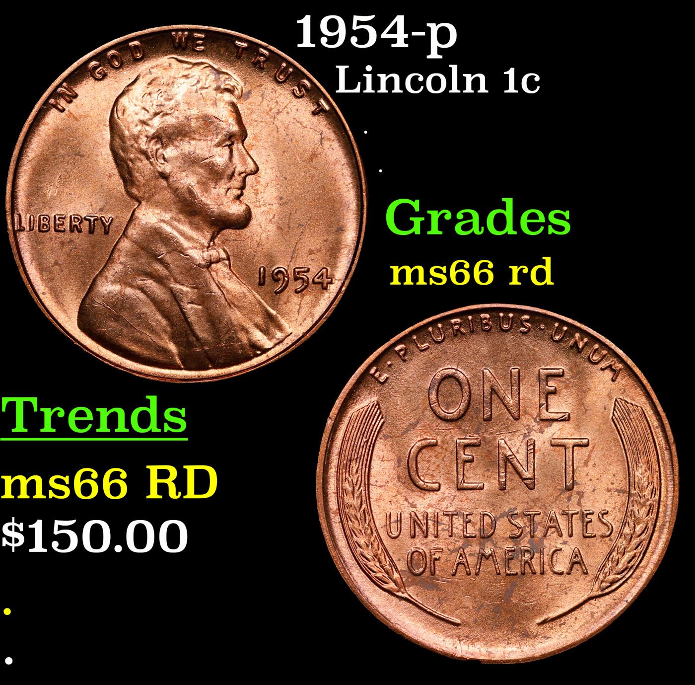 1954-p Lincoln Cent 1c Grades GEM+ Unc RD.