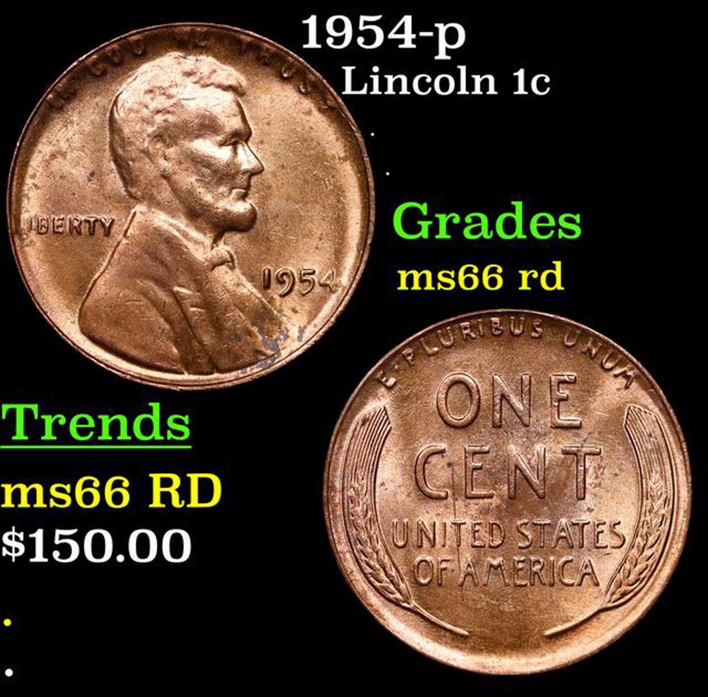 1954-p Lincoln Cent 1c Grades GEM+ Unc RD.
