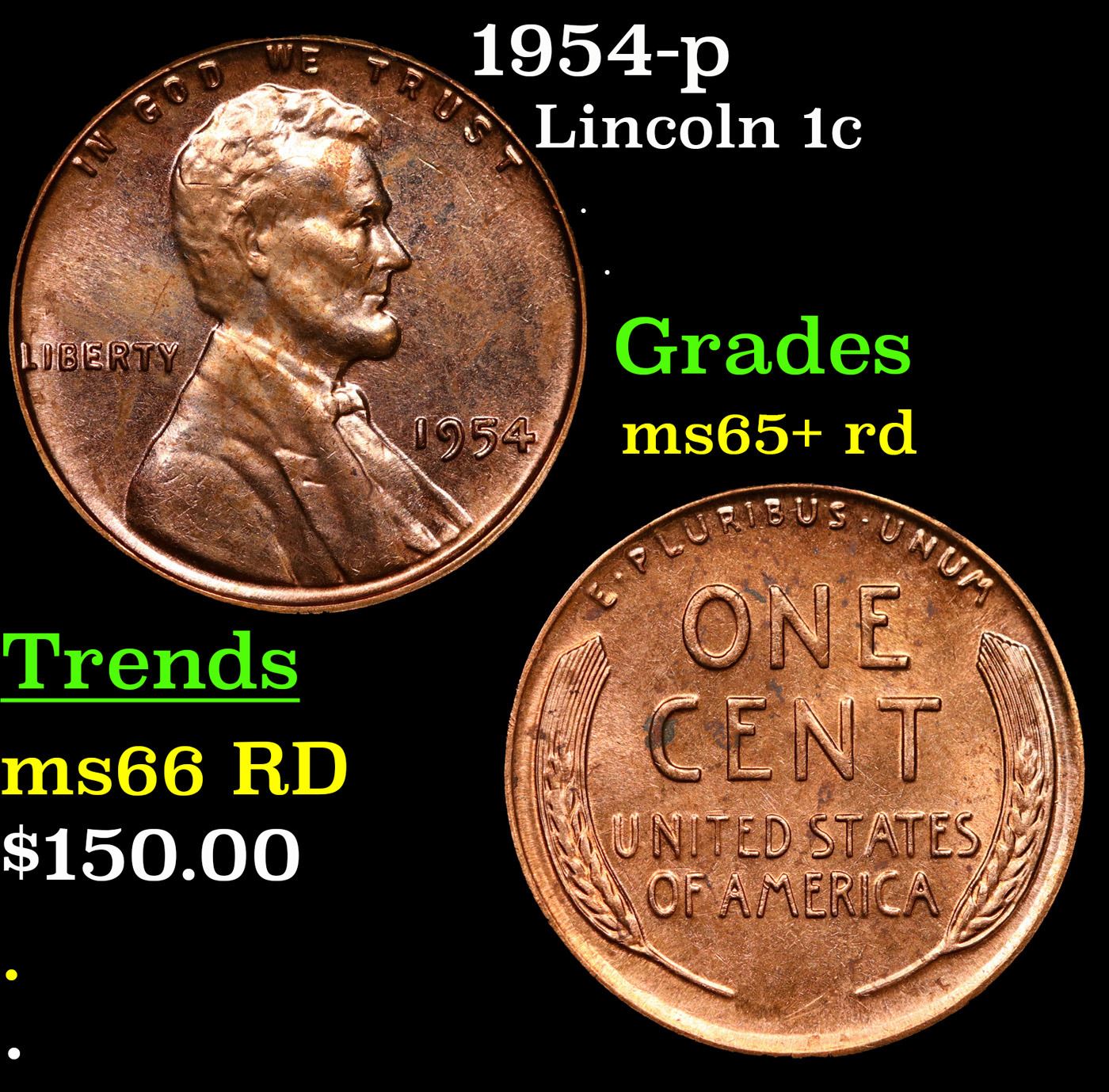 1954-p Lincoln Cent 1c Grades Gem+ Unc RD.