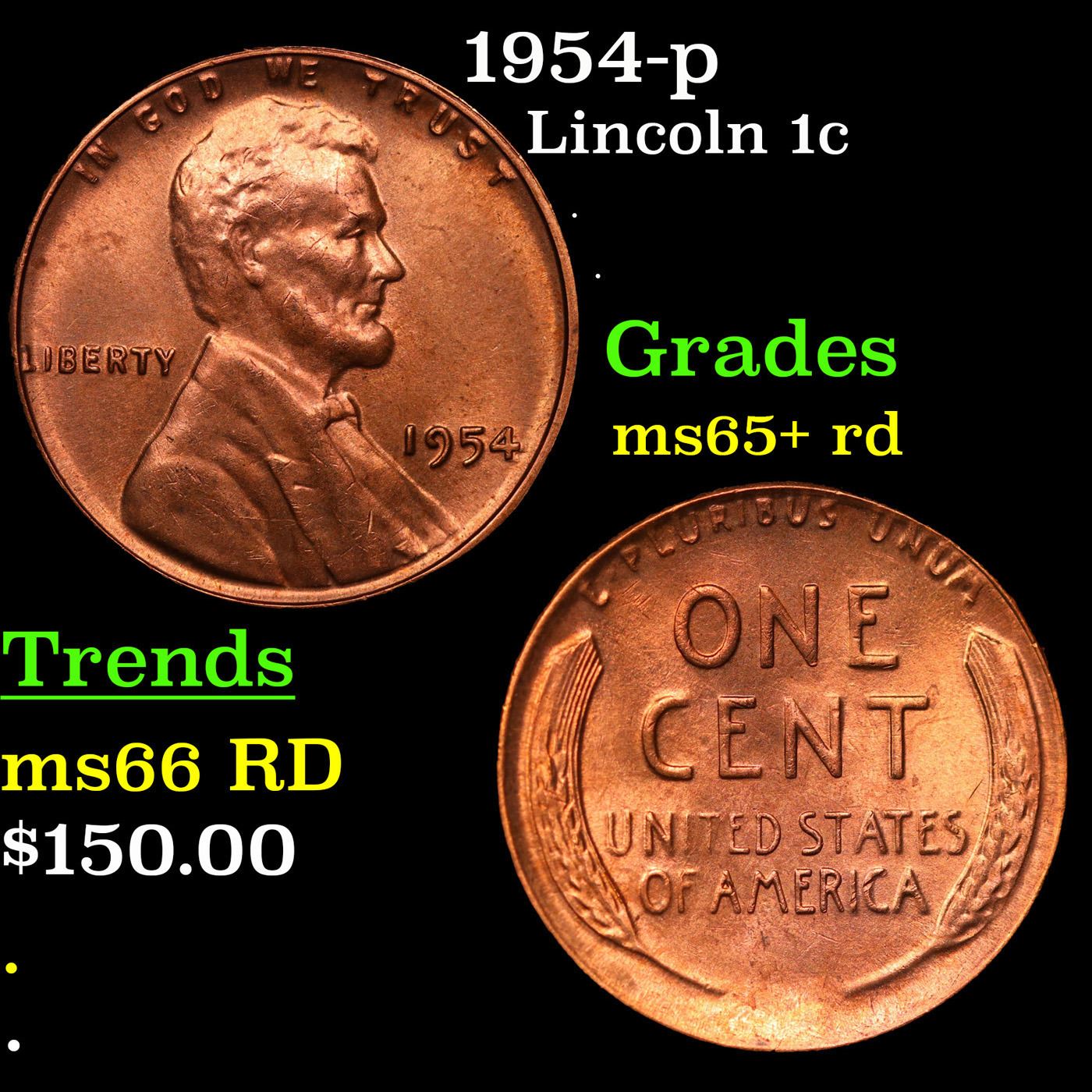 1954-p Lincoln Cent 1c Grades Gem+ Unc RD.
