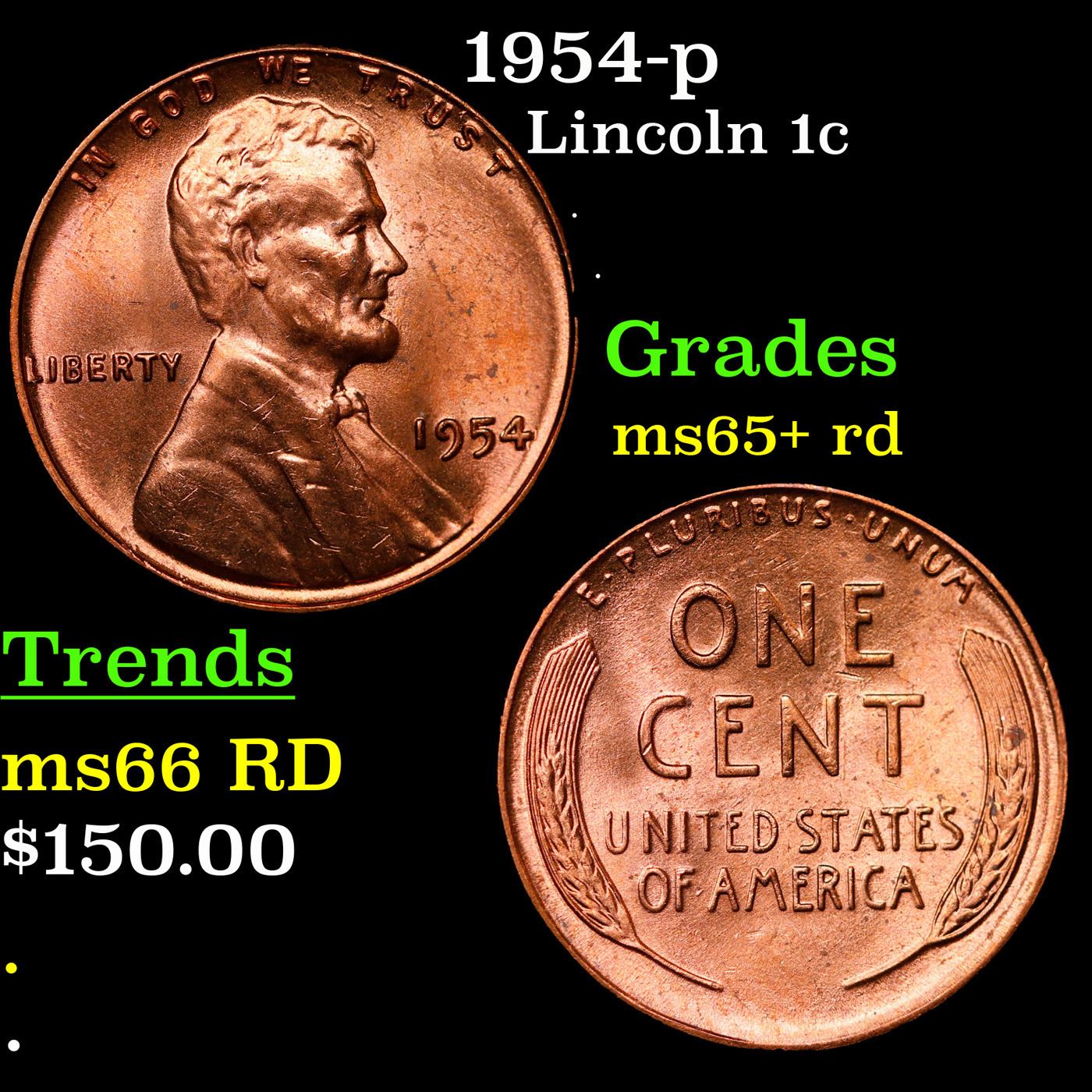 1954-p Lincoln Cent 1c Grades Gem+ Unc RD.