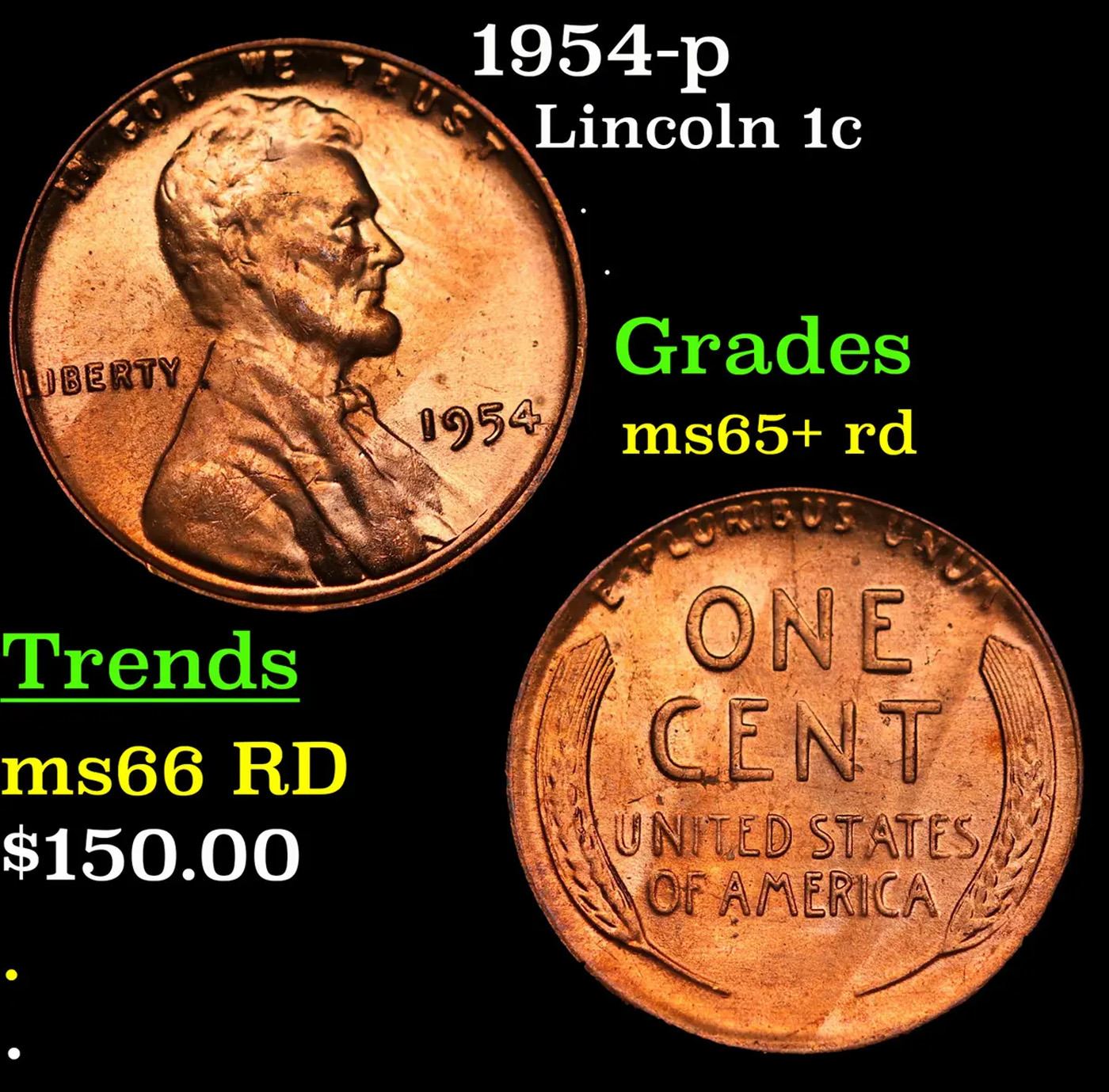 1954-p Lincoln Cent 1c Grades Gem+ Unc RD.