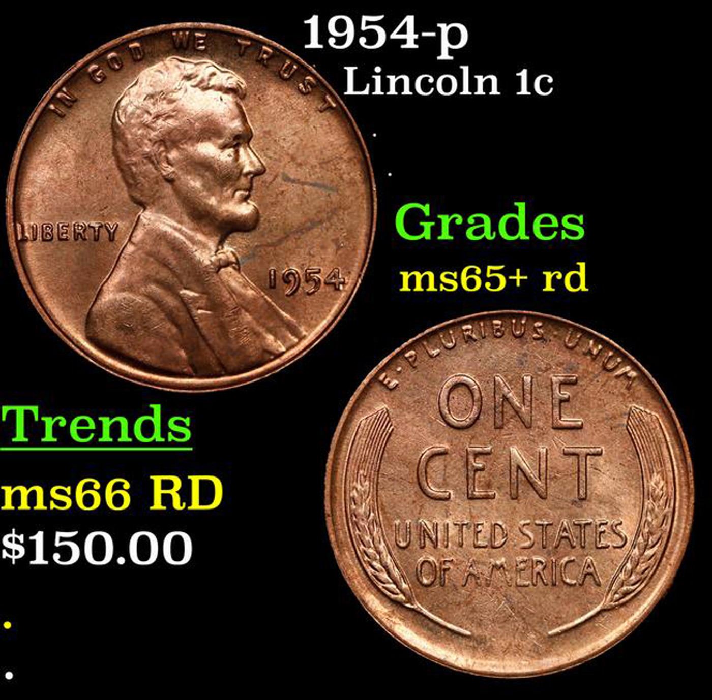 1954-p Lincoln Cent 1c Grades Gem+ Unc RD.