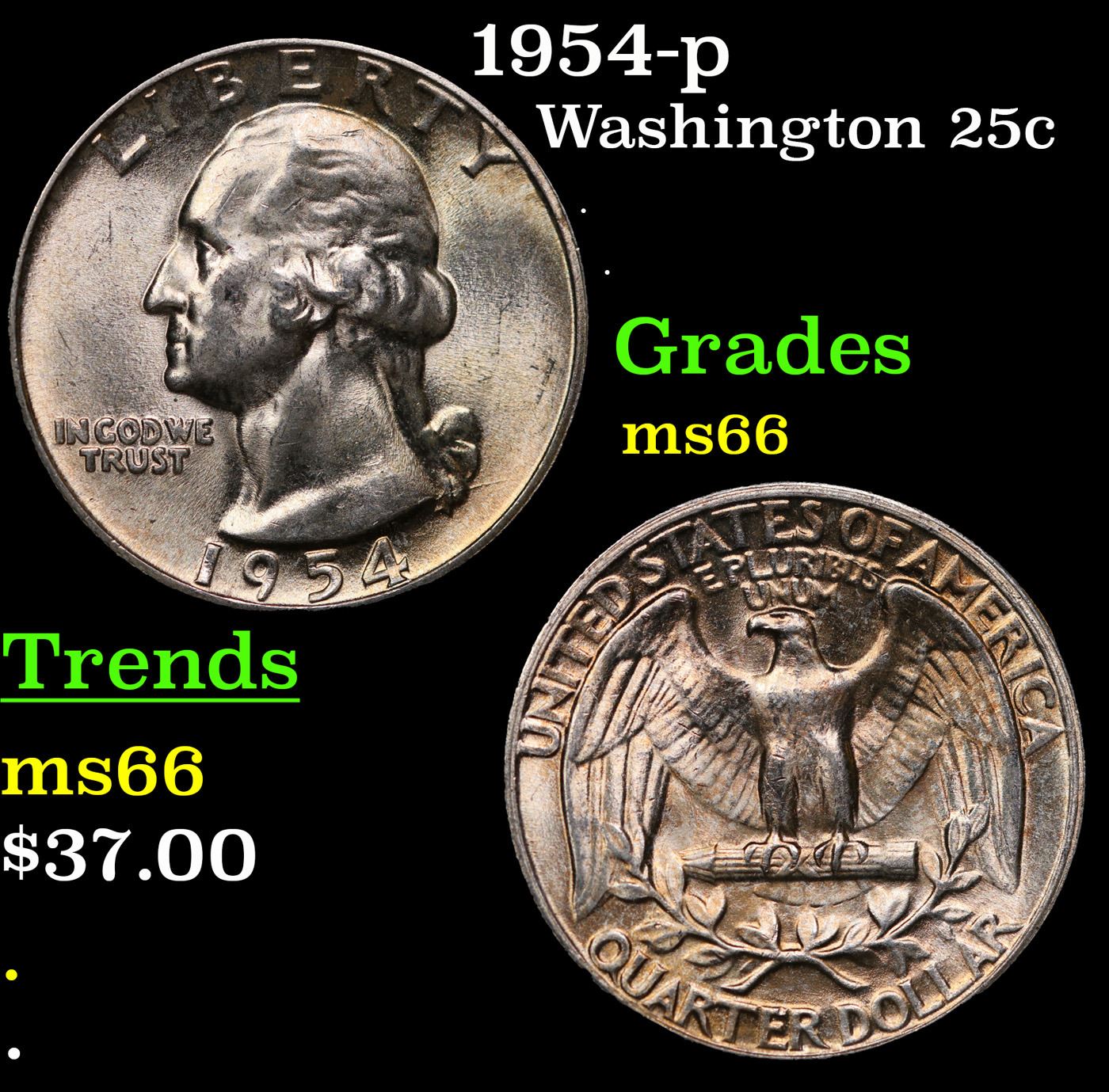 1954-p Washington Quarter 25c Grades GEM+ Unc.
