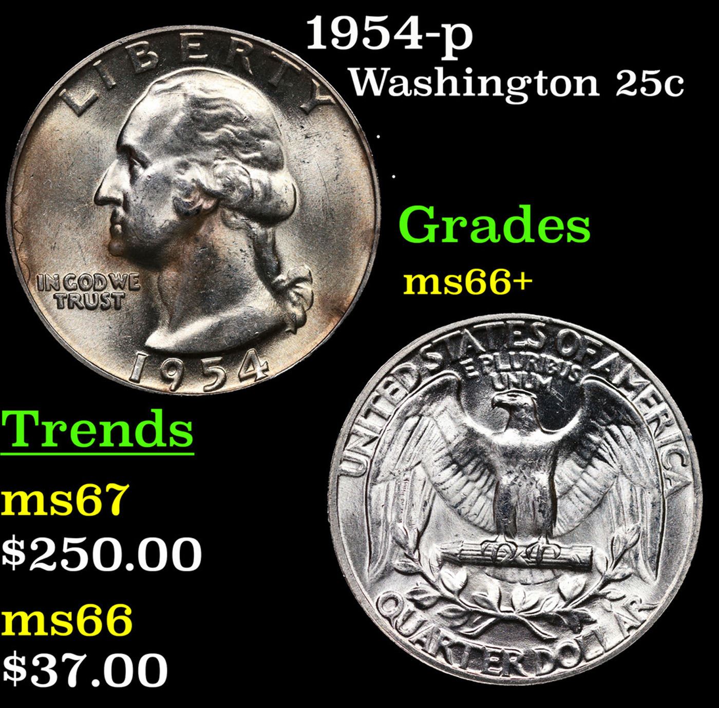 1954-p Washington Quarter 25c Grades GEM++ Unc.