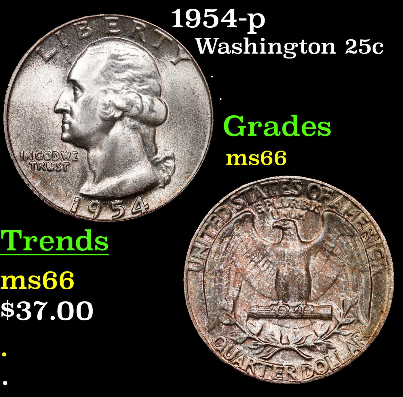 1954-p Washington Quarter 25c Grades GEM+ Unc.