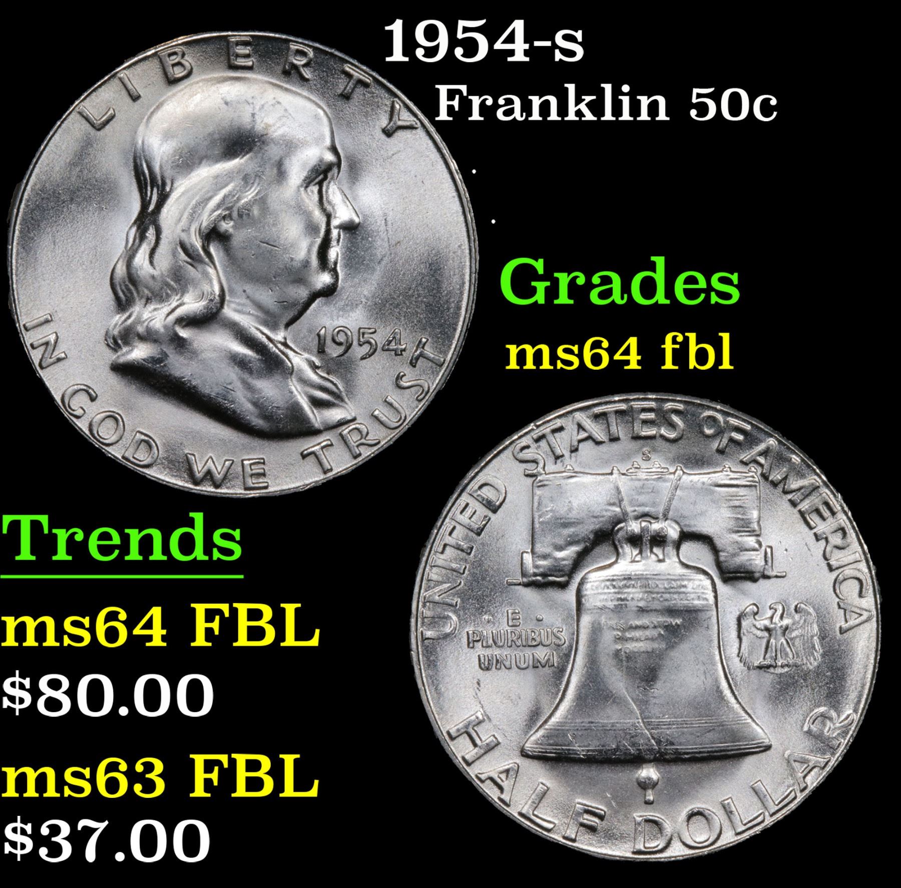 1954-s . . Franklin Half Dollar 50c Grades Choice Unc FBL.