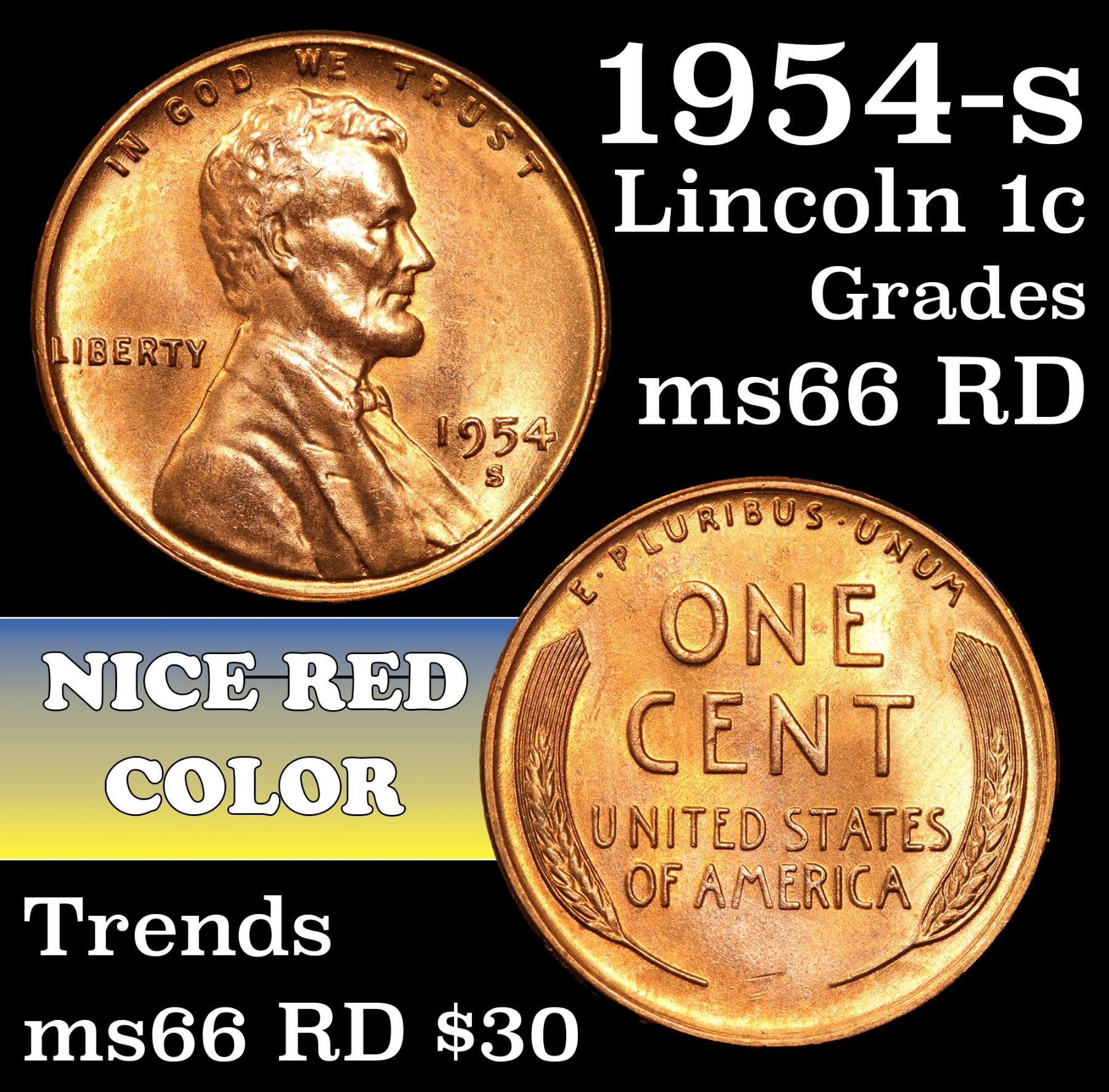 1954-s Lincoln Cent 1c Grades GEM+ Unc RD.