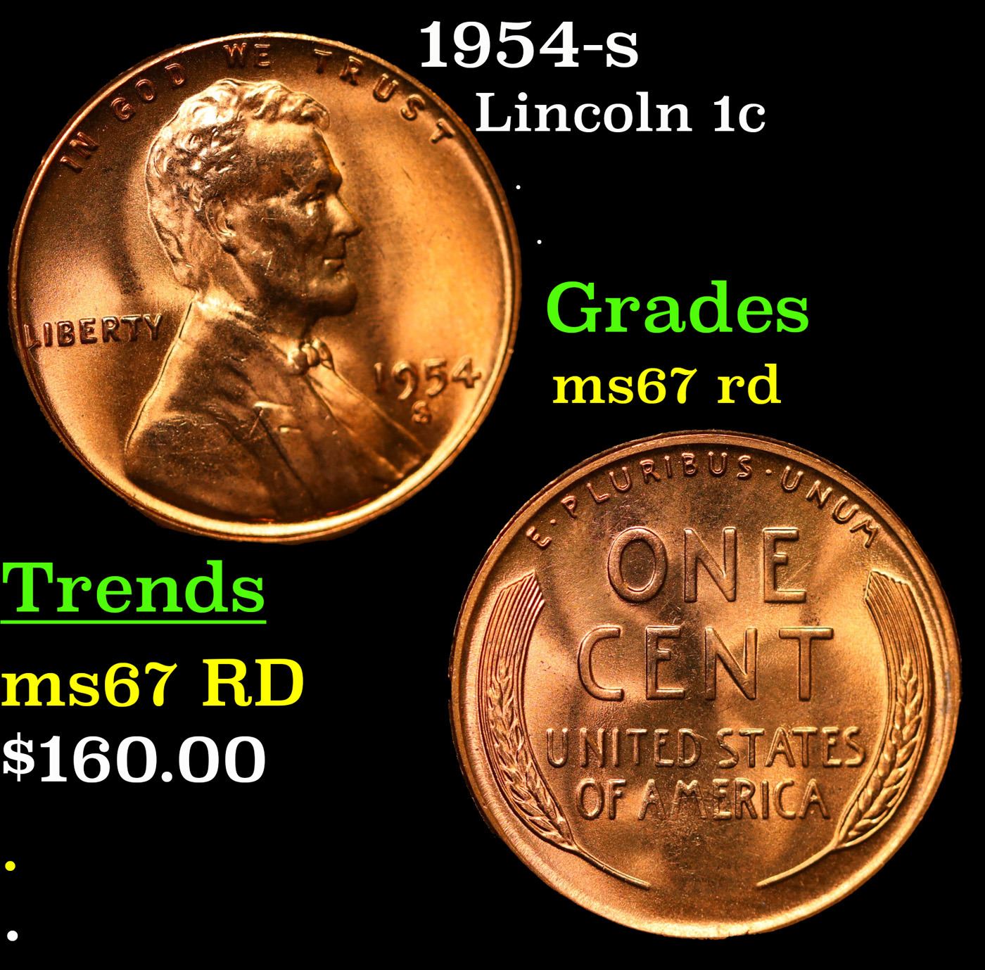 1954-s Lincoln Cent 1c Grades GEM++ Unc RD.