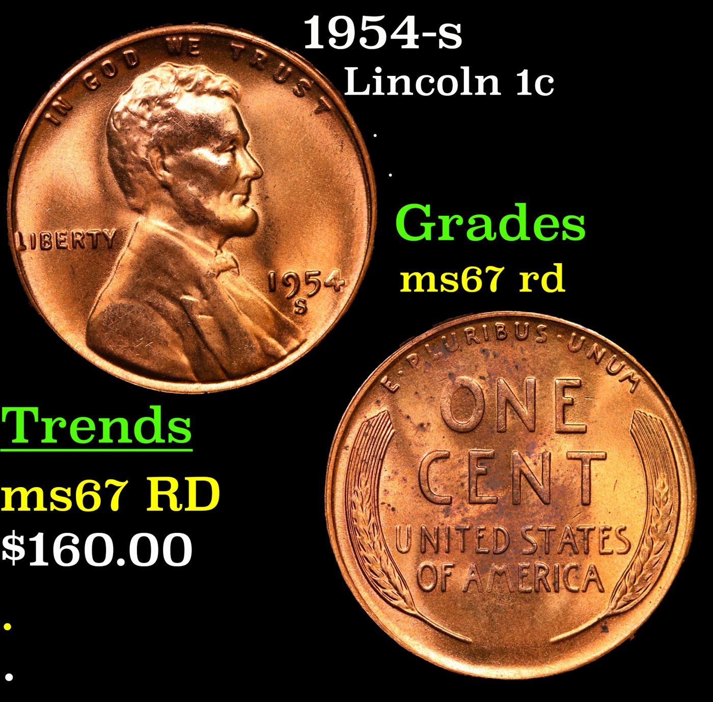 1954-s Lincoln Cent 1c Grades GEM++ Unc RD.