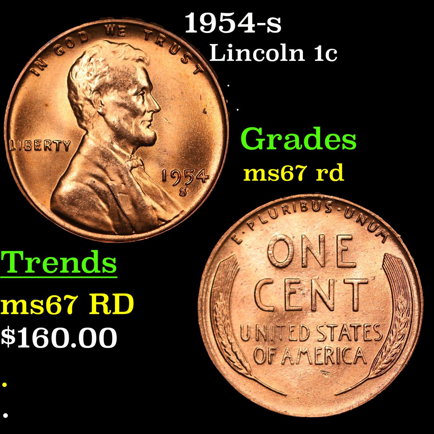 1954-s Lincoln Cent 1c Grades GEM++ Unc RD.