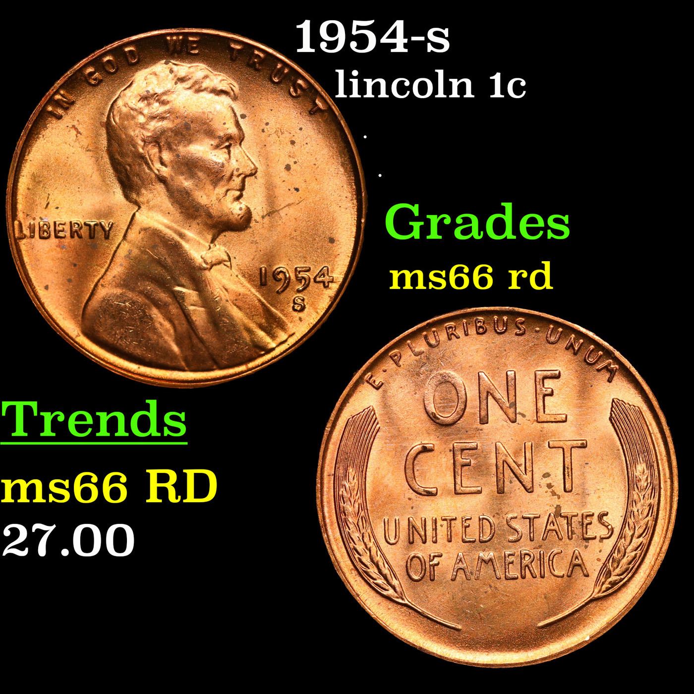 1954-s Lincoln Cent 1c Grades GEM+ Unc RD.