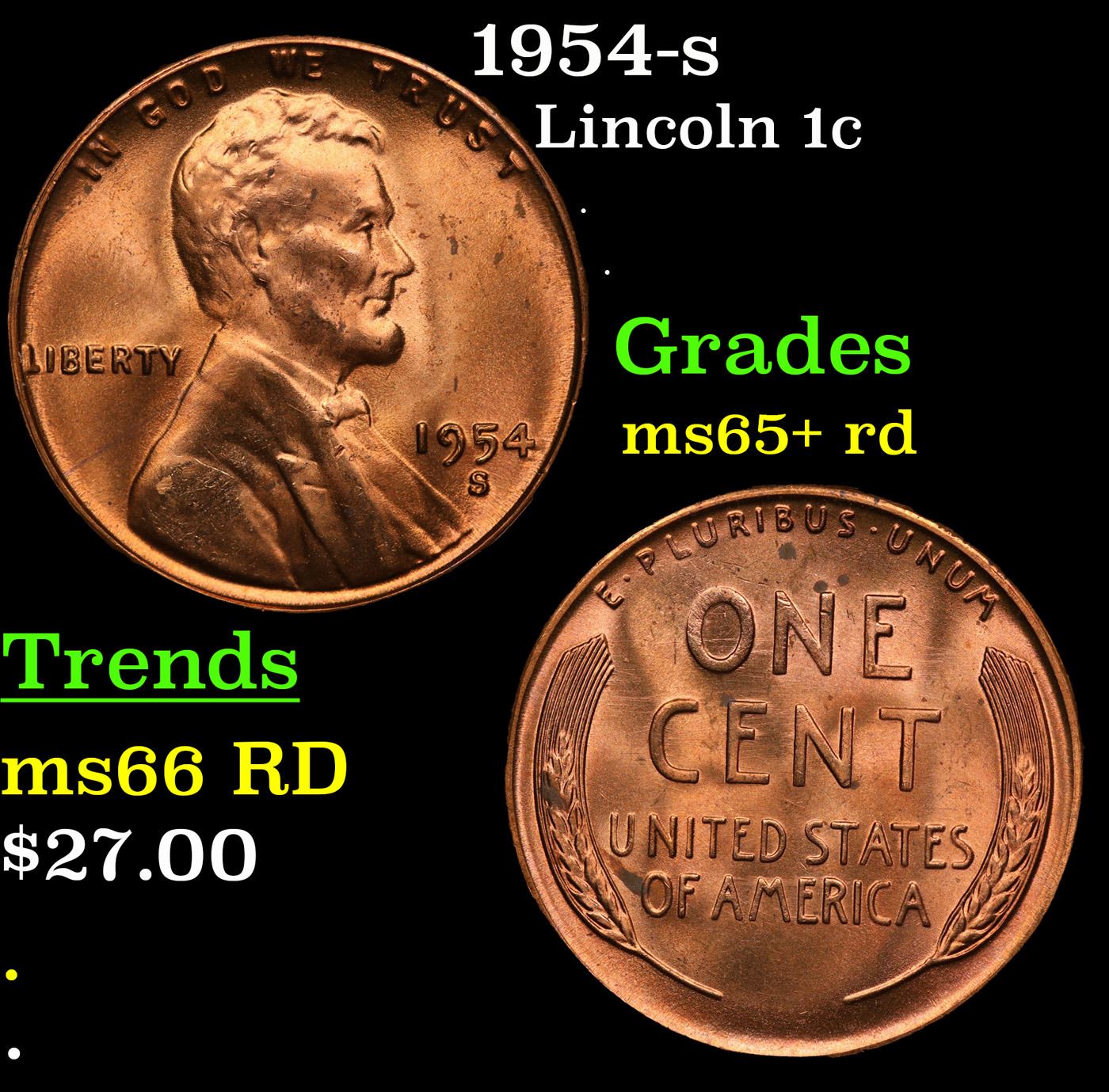 1954-s Lincoln Cent 1c Grades Gem+ Unc RD.