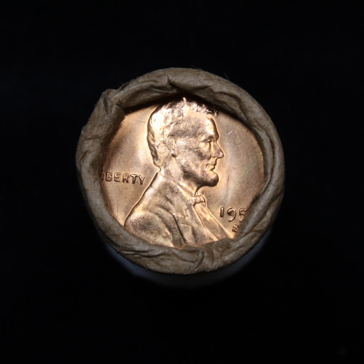 1954-s Lincoln cent 1c roll, 50 pieces (fc). A terrific roll of Lincoln cents. Coins are Gem cherry red. Trends ms65 rd $15. Estimate $750